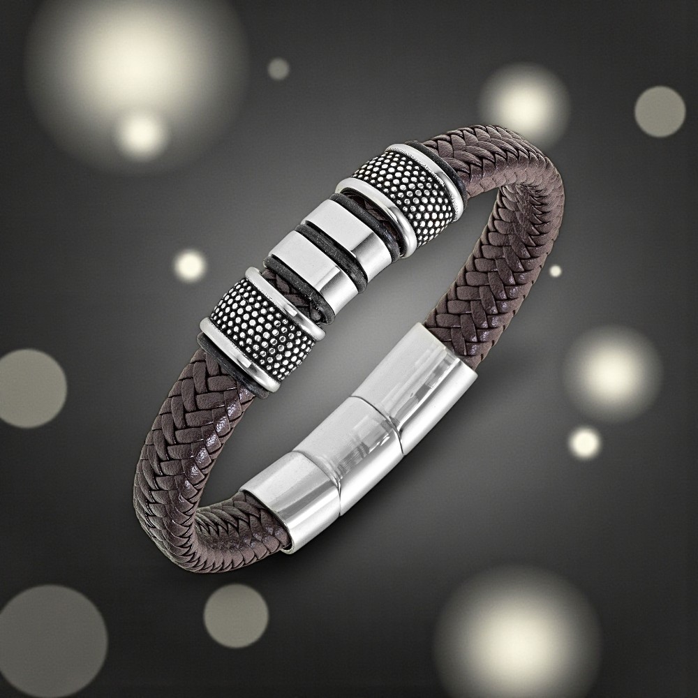 Quality braided dark brown leather, supple and resistant, for optimum comfort on the wrist.