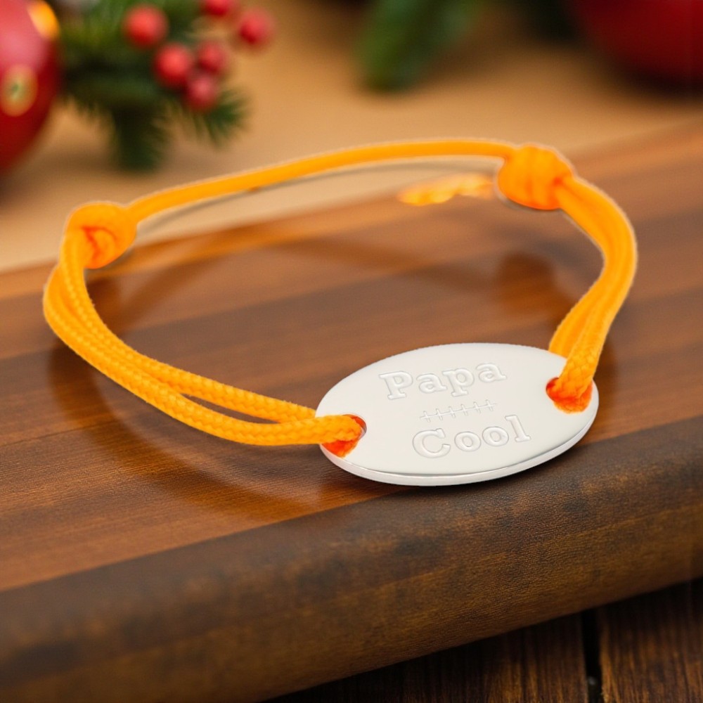 Orange cord bracelet Oval medallion engraved with "Papa Cool" logo