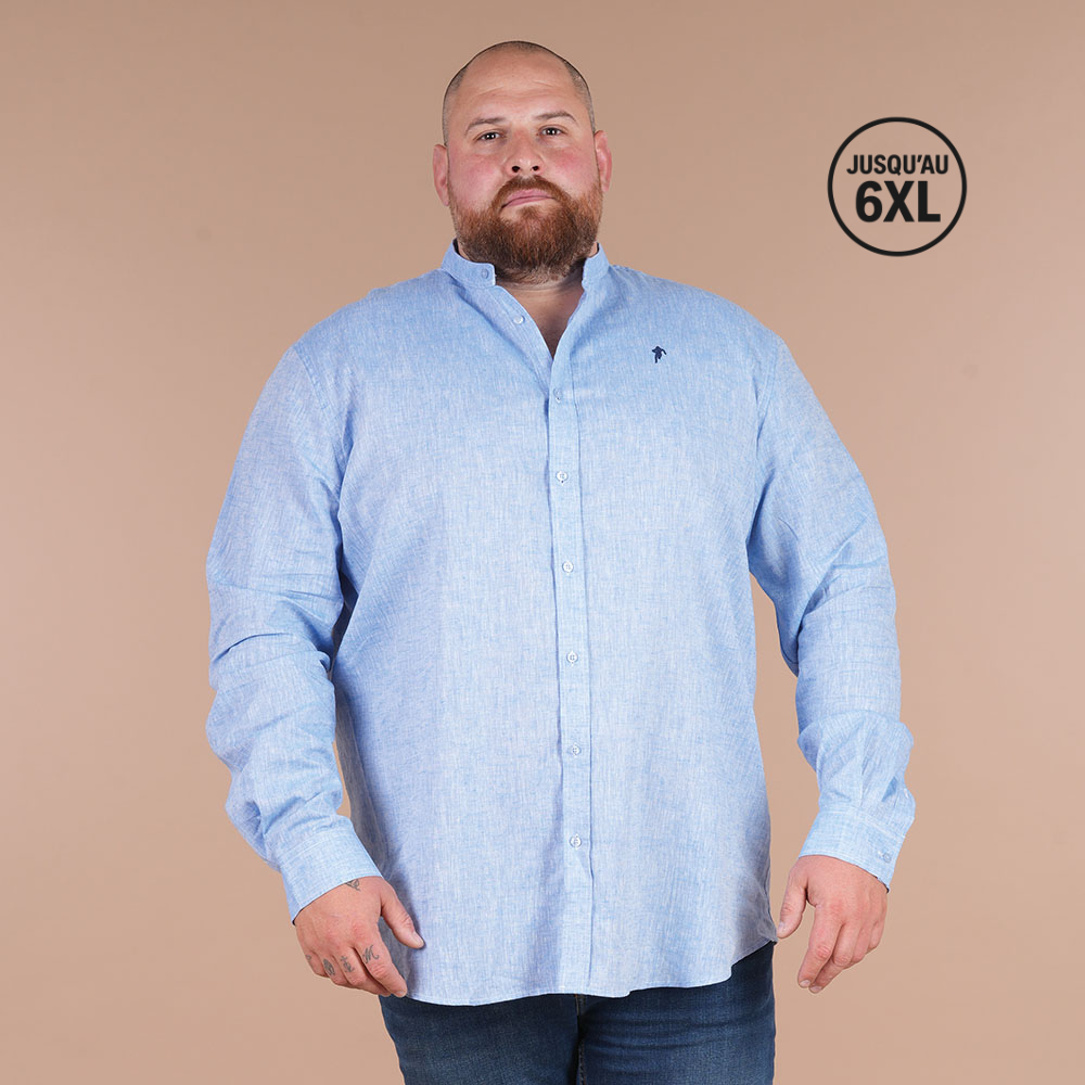 Ruckfield blue linen shirt, long-sleeved mao collar
