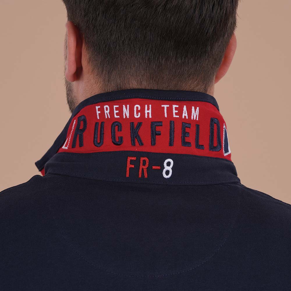 This model features refined embroidery on the chest and an imposing embroidered label on the back reading "Ruckfield French Rugby Club", a symbol of authentic rugby spirit. The contrast-finish collar cuff and meticulous detailing add an extra touch of character.