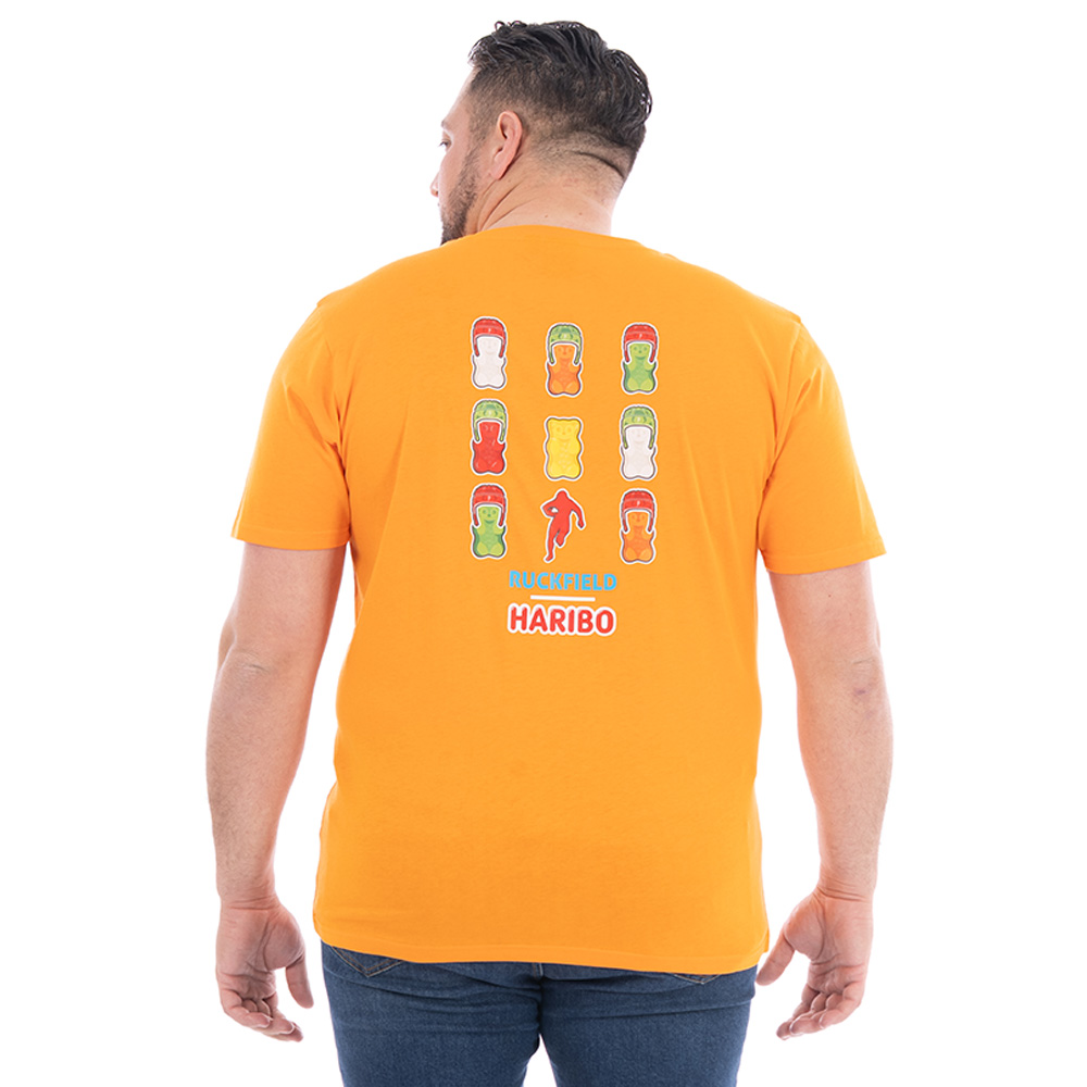 Issu de la collaboration exclusive Ruckfield x Haribo, ce t-shirt revisite l’univers iconique des bonbons avec une touche sportive et décalée inspirée du rugby. Sur le devant, un visuel discret placé sur la poitrine associe l’univers Haribo à l’ADN rugby de Ruckfield, pour une signature subtile et originale. Le dos dévoile un graphique plus audacieux mettant en scène plusieurs oursons Haribo colorés, accompagnés de la silhouette de Sébastien Chabal. Un design fun et graphique qui symbolise parfaitement la rencontre entre gourmandise et esprit sportif.