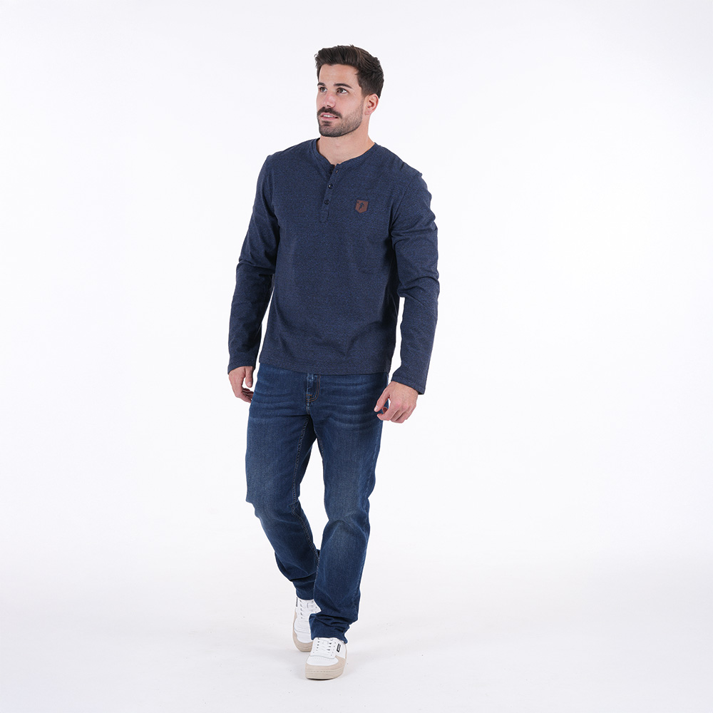 Elegant and versatile, this navy blue long-sleeved tee is a wardrobe staple. Made from a soft, comfortable fabric, it offers a modern cut that suits every figure. Ideal for cooler days, this model is perfect for wearing on its own or layered under a jacket or sweater.