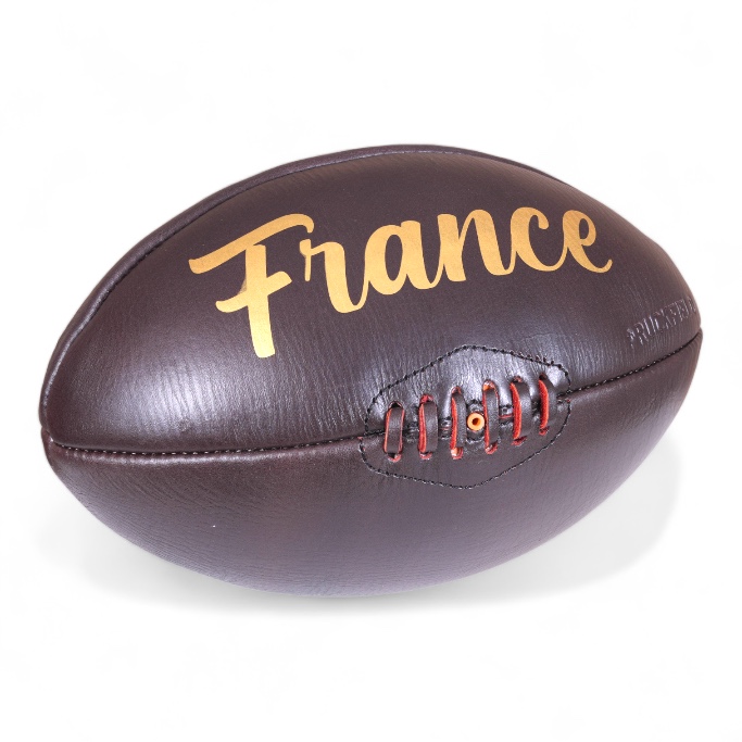 Magnifique ballon de rugby de collection en cuir marron personnalisé FRANCE