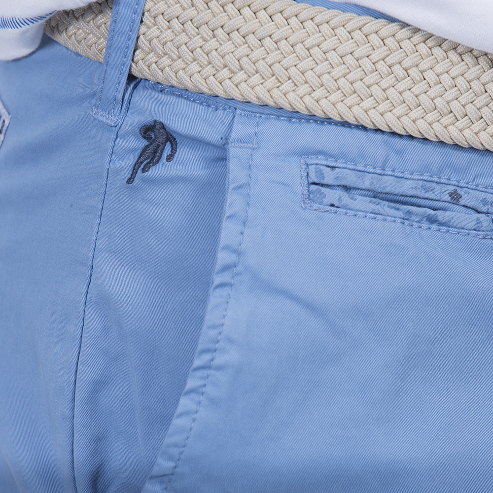Bermuda droit, en coton stretch uni. Il se pare de 2 poches italiennes à l'avant, de 2 poches passepoilées à l'arrière, d'une fermeture zippée rehaussée d'un bouton puis du logo Ruckfield brodé sur la cuisse gauche.
