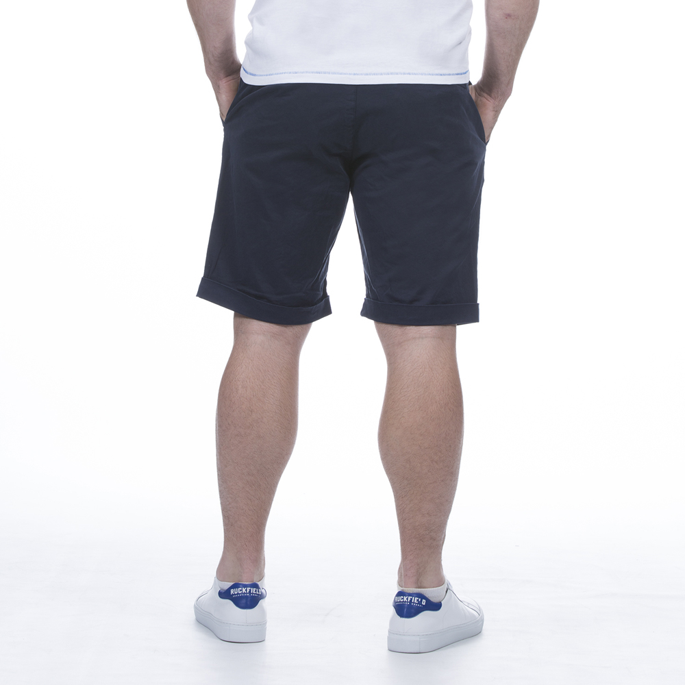 Bermuda droit, en coton stretch uni. Il se pare de 2 poches italiennes à l'avant, de 2 poches passepoilées à l'arrière, d'une fermeture zippée rehaussée d'un bouton puis du logo Ruckfield brodé sur la cuisse gauche.