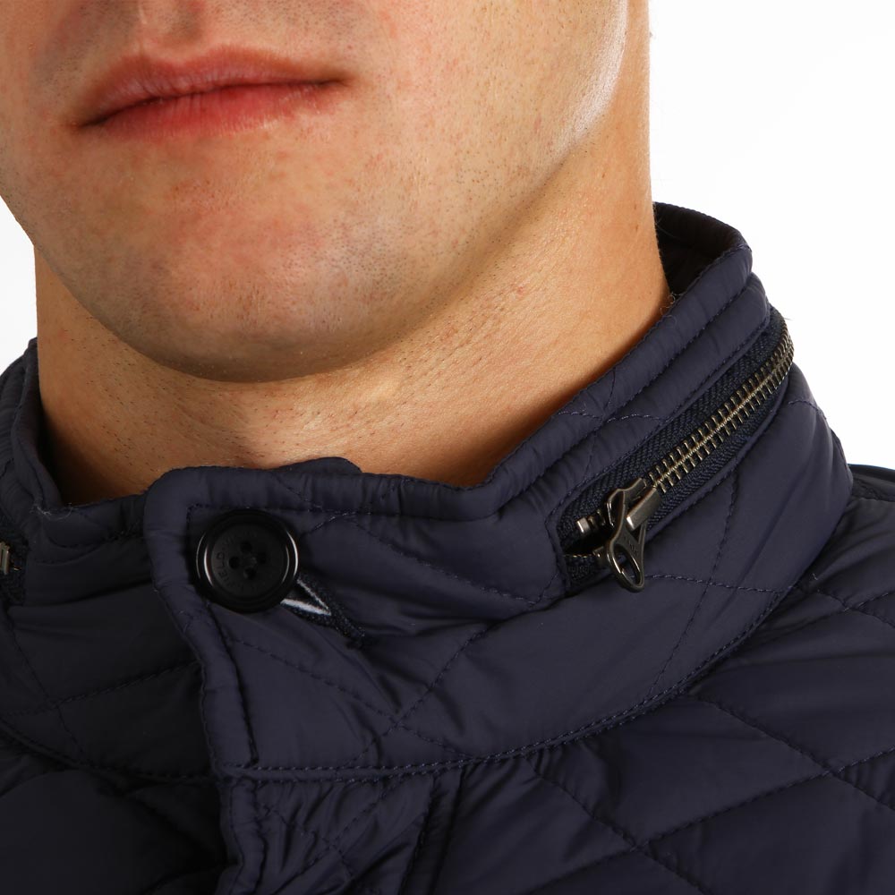Ce blouson marine matelassé 100% polyamide associe confort et élégance. Broderie manche et capuche intégrée au niveau du col. Quatre poches sur le devant.