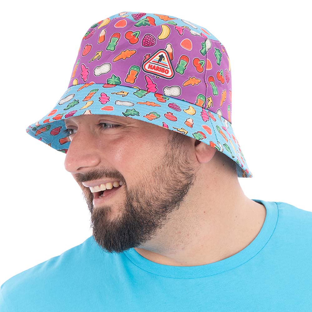 Ce bob se distingue par son imprimé all-over coloré, mettant en scène les iconiques bonbons Haribo : oursons, bananes, bouteilles et autres gourmandises emblématiques. Avec ses couleurs vives et dynamiques, il apporte une touche fun et décalée à toutes vos tenues. Léger et confortable, il est parfait pour vous accompagner lors des journées ensoleillées, que ce soit en ville, en vacances ou lors des moments de détente après un match.