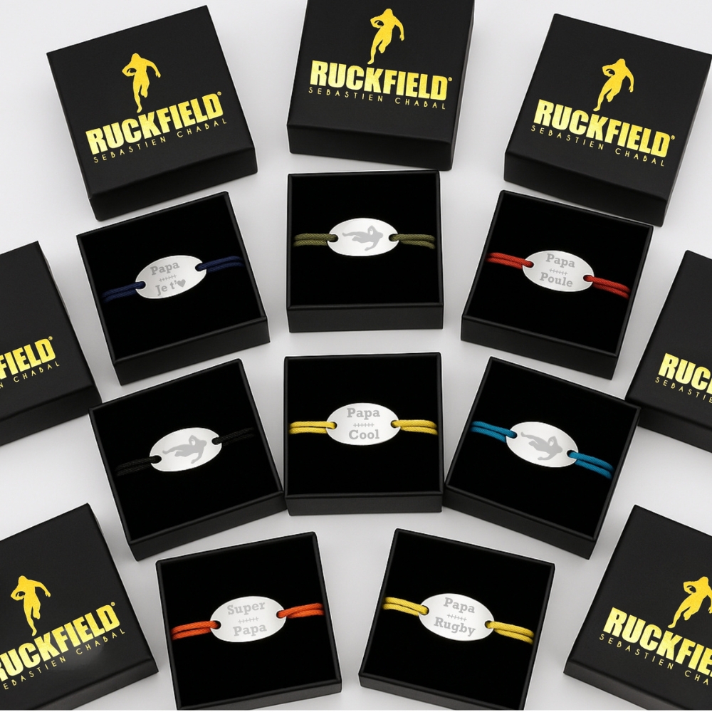 Le bracelet est vendu avec sa boite à bijoux Ruckfield, noir et doré.