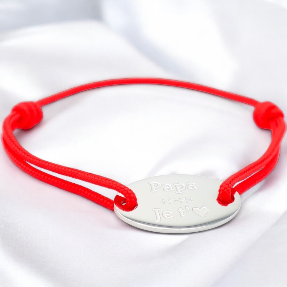 Bracelet cordon rouge Médaillon ovale gravé "Papa je t’aime"