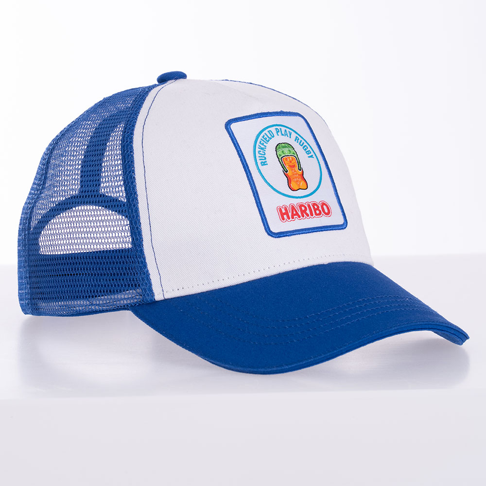 Complétez votre look avec cette casquette issue de la collaboration Ruckfield x Haribo, qui mélange l’esprit rugby et l’univers gourmand de la célèbre marque de bonbons. Avec son design intemporel, cette casquette associe un panneau avant blanc à une visière et un filet bleu, offrant un style à la fois sportif et décontracté. Sur le devant, un badge exclusif Haribo apporte une touche originale et colorée, signature de cette collaboration unique. Grâce à son arrière en mesh respirant, elle assure un confort optimal même par temps chaud, tandis que sa fermeture réglable permet un ajustement parfait. Idéale pour compléter une tenue casual ou afficher votre esprit rugby avec une touche fun.