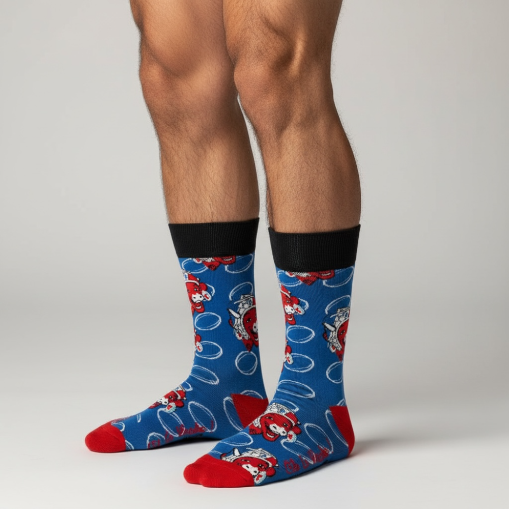 Ces chaussettes sont ornées de ballons de rugby et de vaches qui rit, un design amusant et dynamique qui ne manquera pas de faire sourire les amateurs de rugby et les fans de la marque. Le mariage entre l'univers sportif du rugby et l'humour de Vache qui Rit crée un look à la fois original et amusant. Ces chaussettes sont idéales pour ajouter une touche de couleur et de bonne humeur à vos tenues.