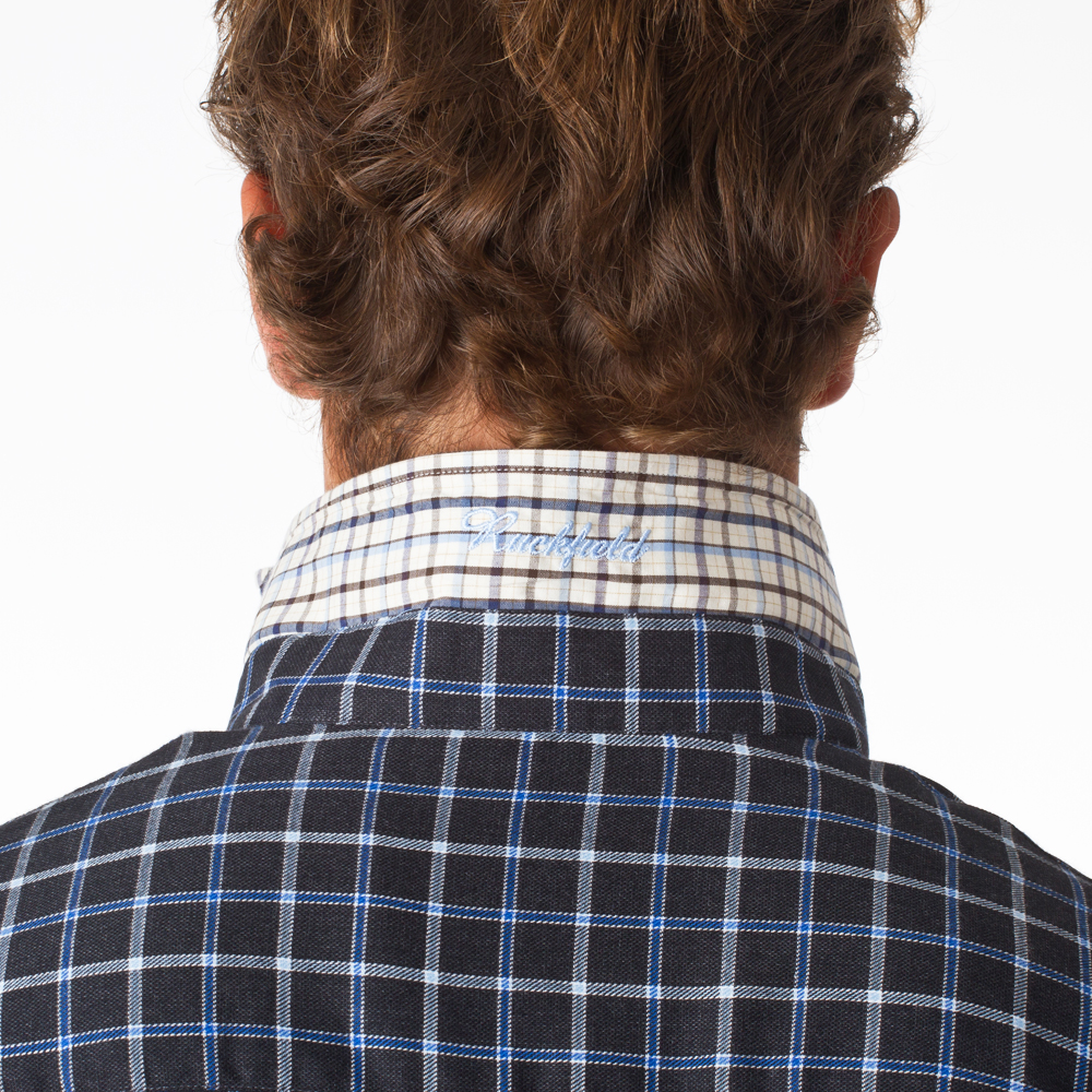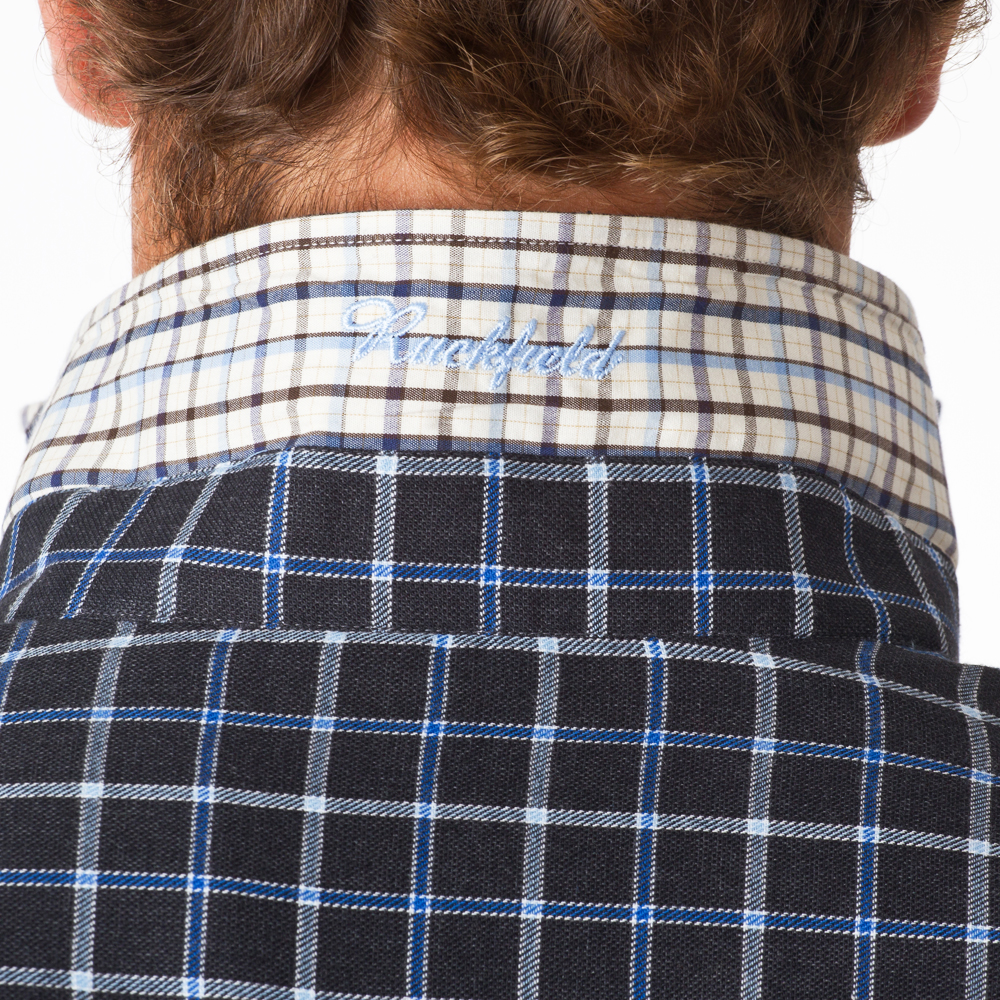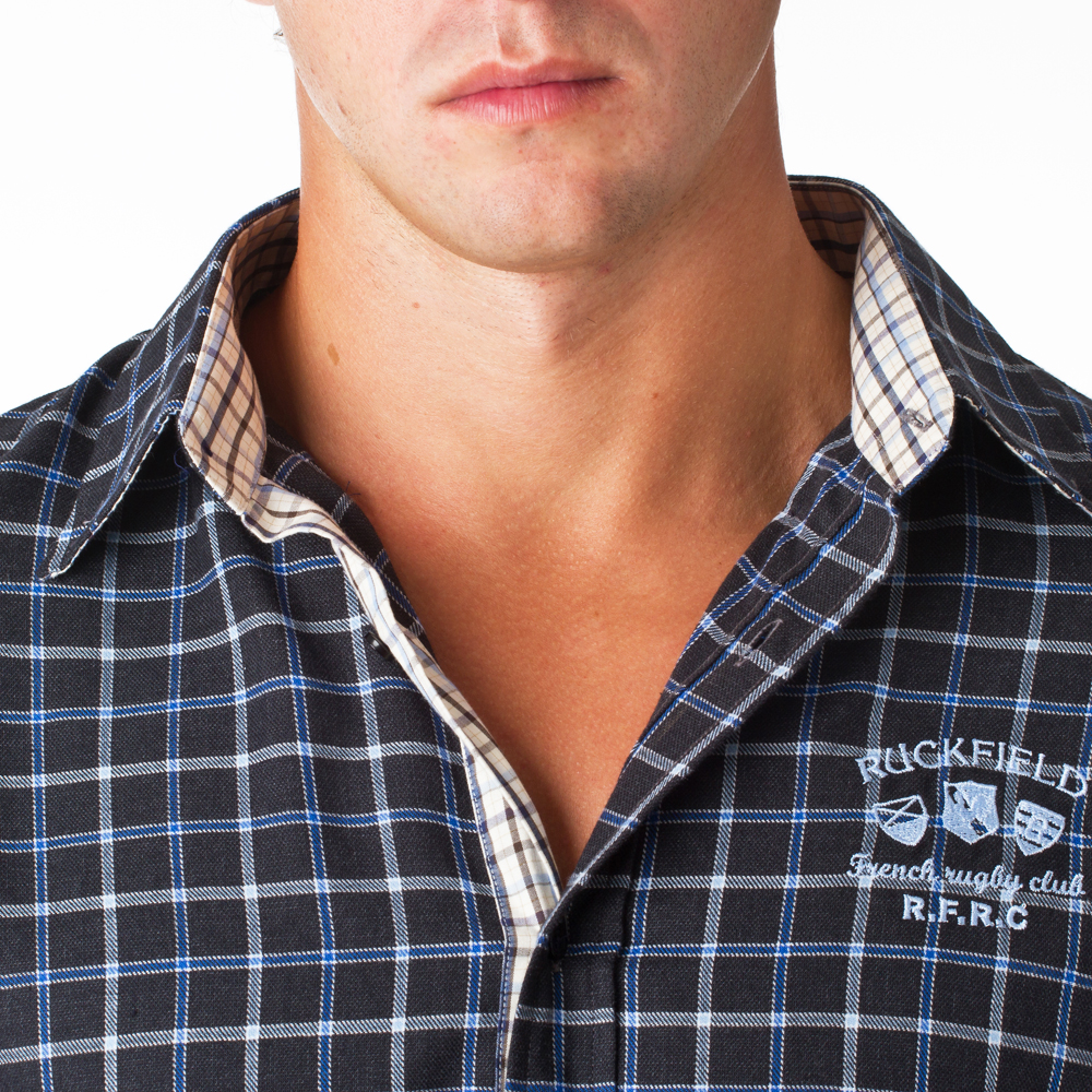 Disponible en grandes tailles (jusqu'au 5XL), cette chemise à carreaux anthracites et bleus est à manches longues et 100% coton. Contraste tissu sous le poignet et l'intérieur du col. Elle conserve une coupe classique avec le logo brodé sur la poitrine et pour finir un col pointe boutonné.