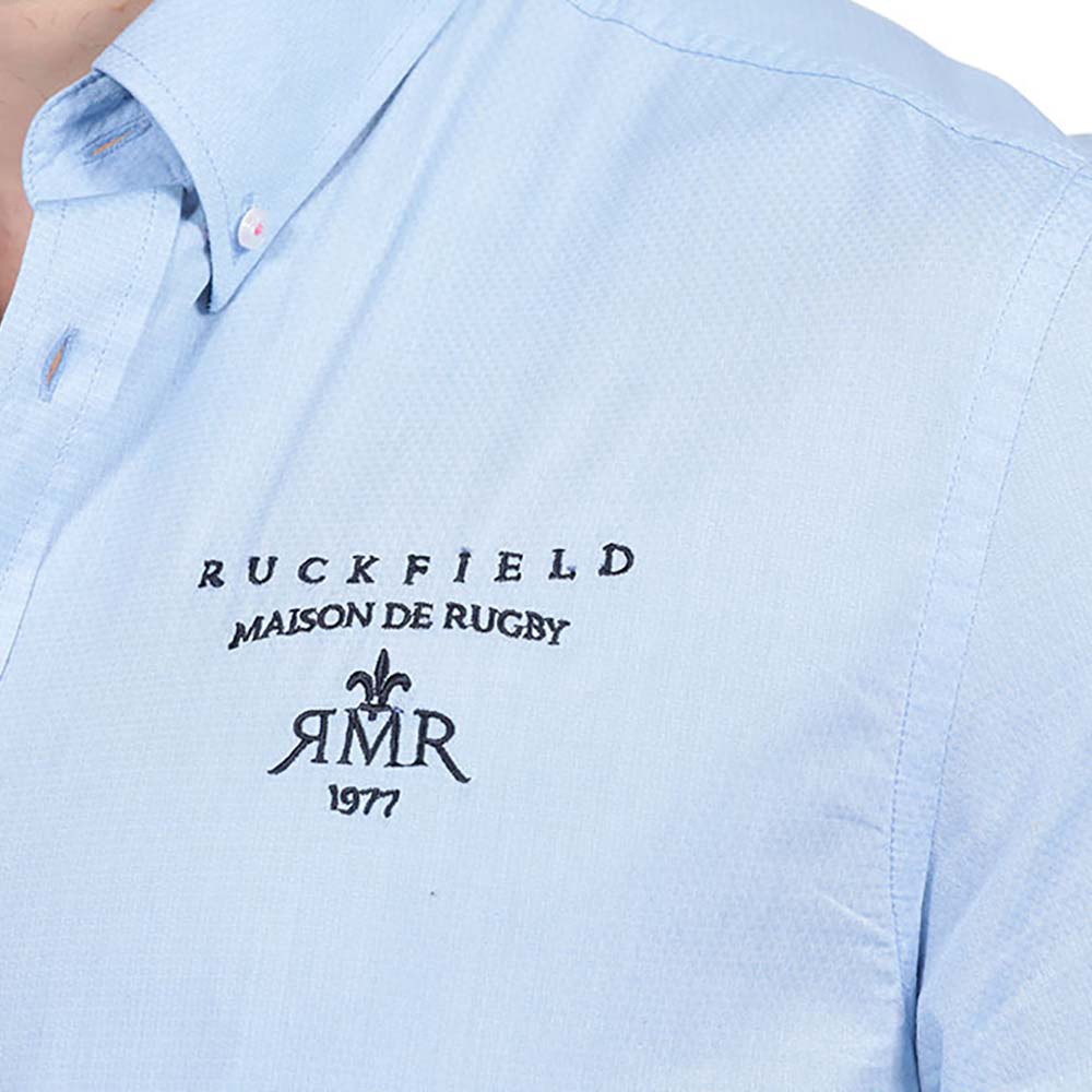 Cette chemise manches longues en coton bleu séduit par son tissu raffiné et à l'imprimé Maison de Rugby sous le col. Sa coupe classique décontractée en fait un vêtement facile à combiner. Elle fera merveille dans votre garde robe.