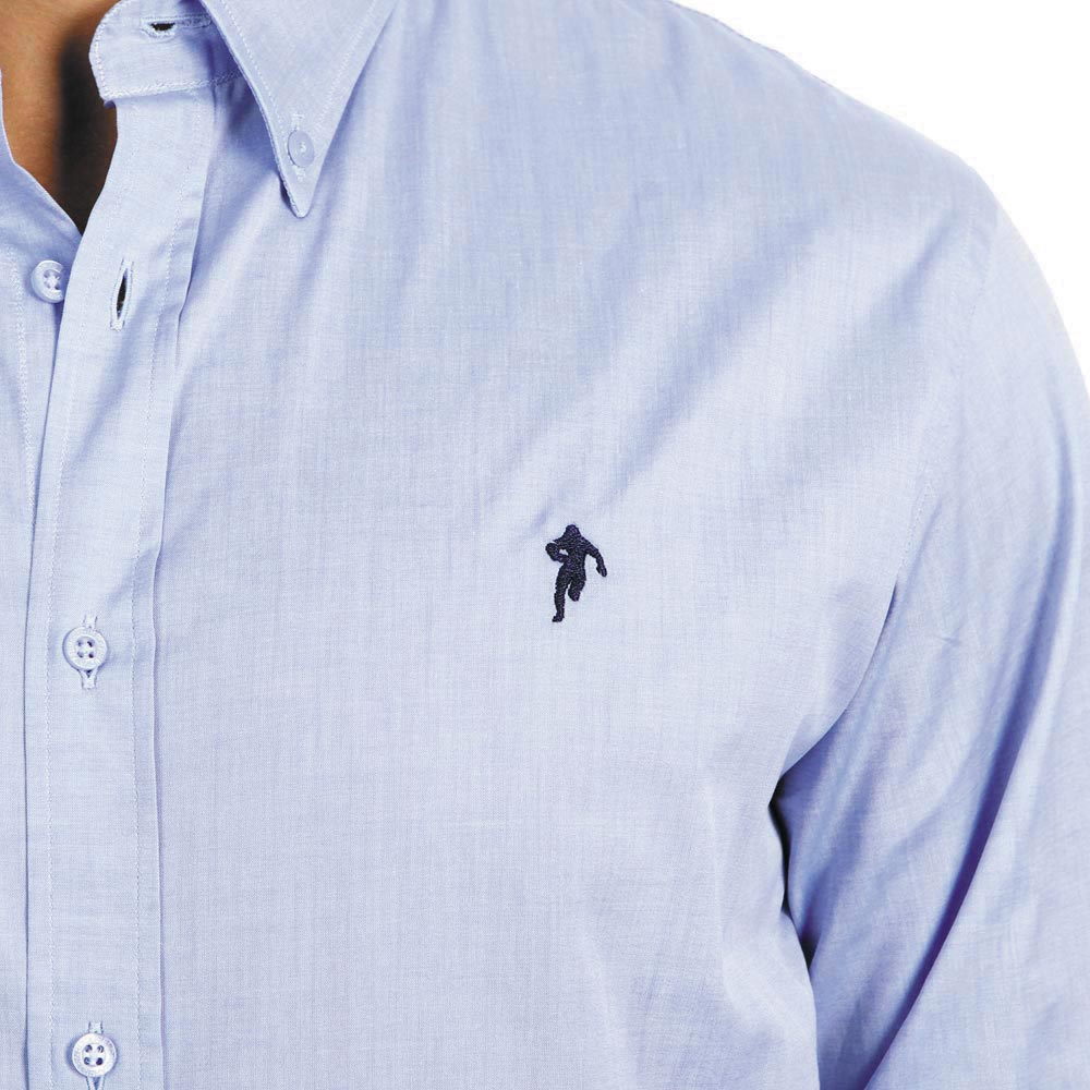 Chemise rugby Reveal à manches longues en coton soyeux. Broderie Ruckfield discrète. Pli d'aisance au dos. Col pointe boutonné.