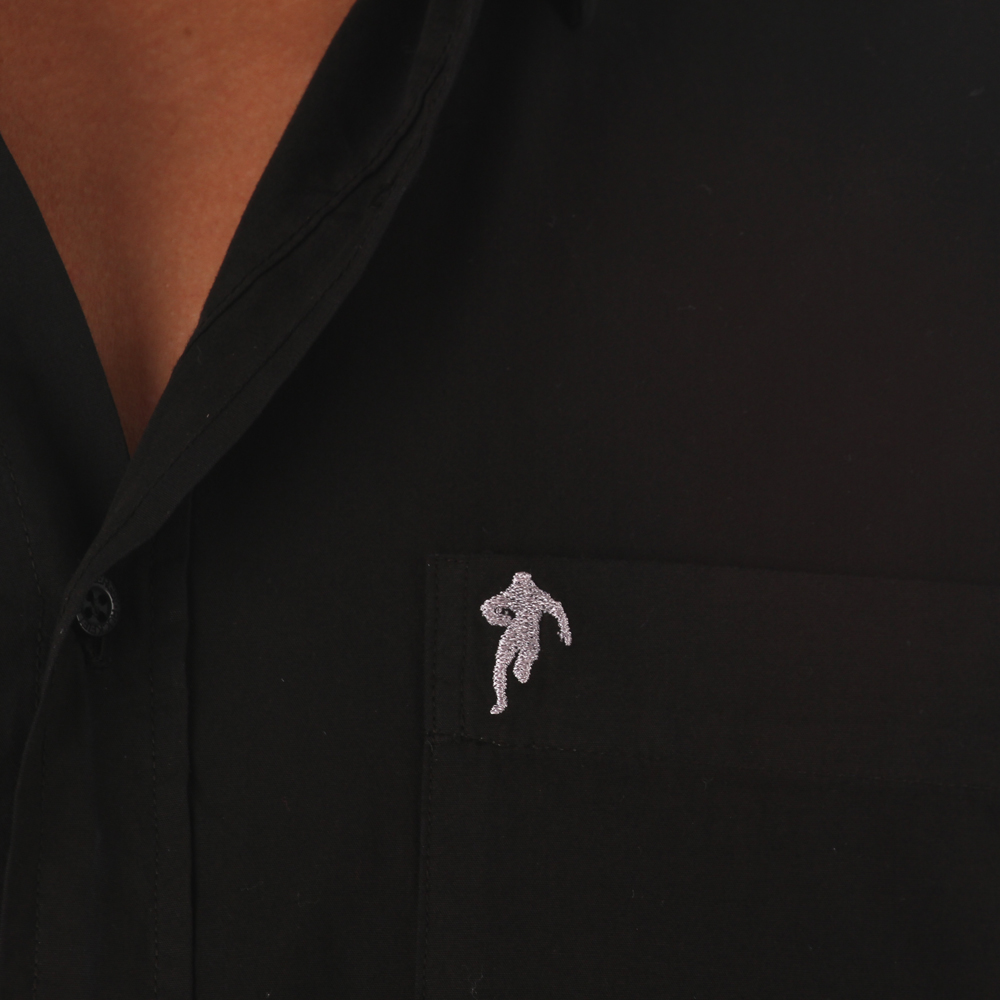 Chemise manches courtes unie blanche, 100% coton. Silhouette Sébastien Chabal brodée poitrine. Disponible en grande taille (jusqu'au 5XL)