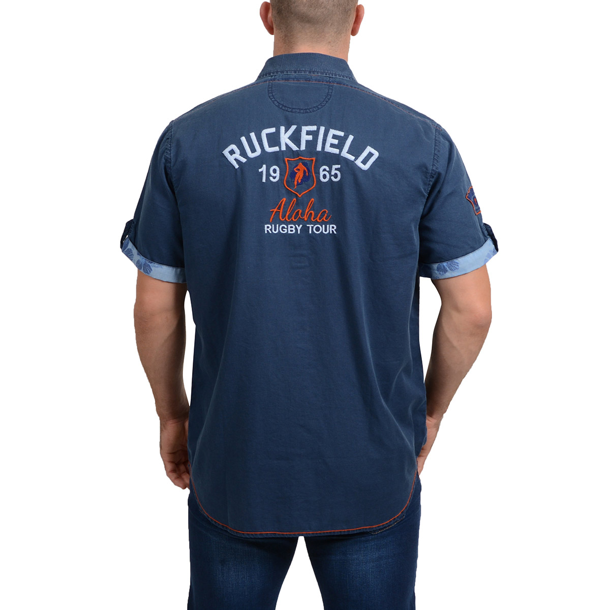 Classique est la description qui convient à cette très belle chemise Ruckfield du thème Island. Logo Sébastien Chabal sur la poche poitrine, broderies 1965 Aloha Rugby Tour au dos, patch côté droit de la manche boutonnée aux motifs contrastés et surpiqûres en bas de pièce.