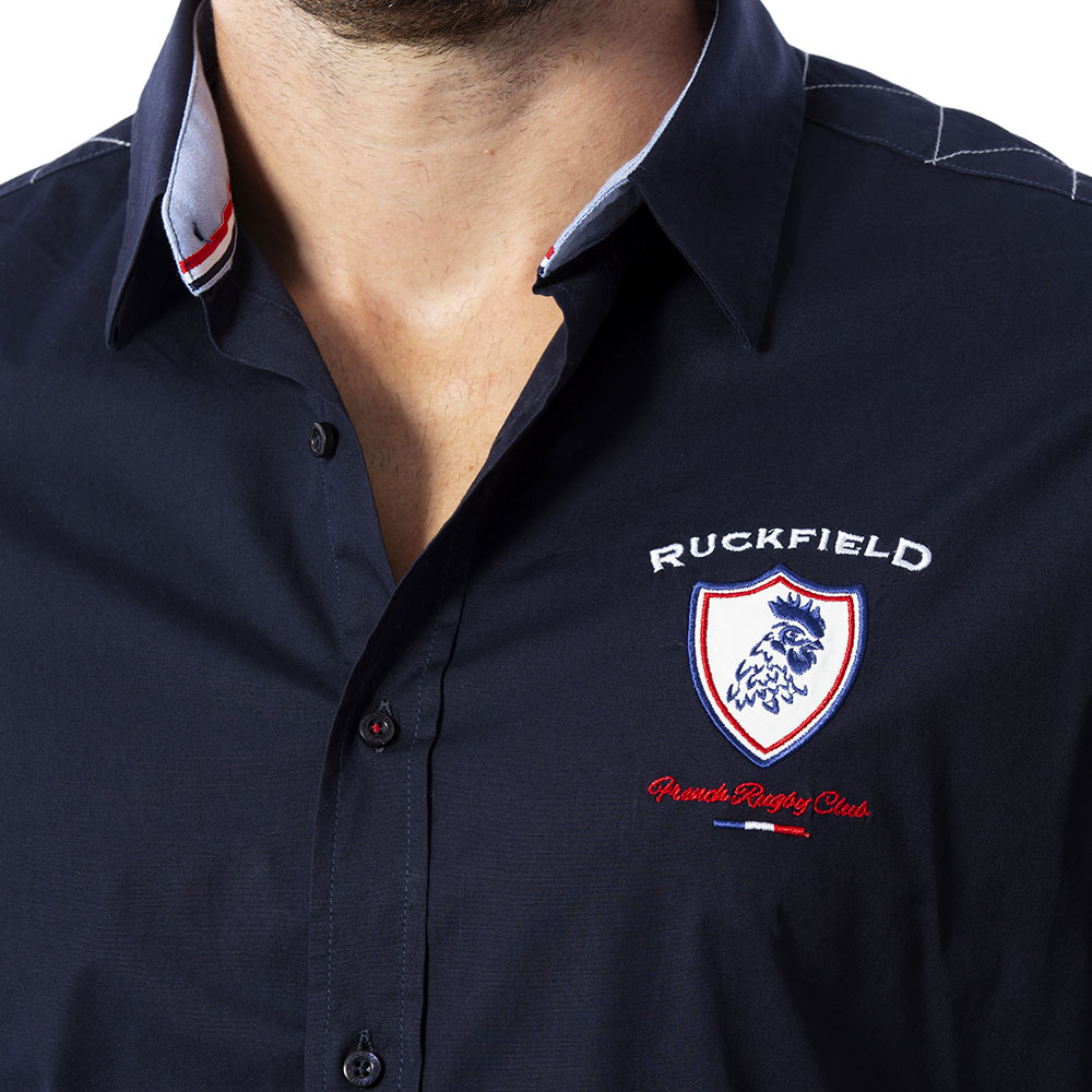 Adoptez notre chemise pour un style élégant mais décontracté. De nombreux détails font de cette chemise le must have de votre vestiaire, surpiqures au niveau des épaules, broderies France sur la poitrine, revers de manches travaillés et renforts en twill.