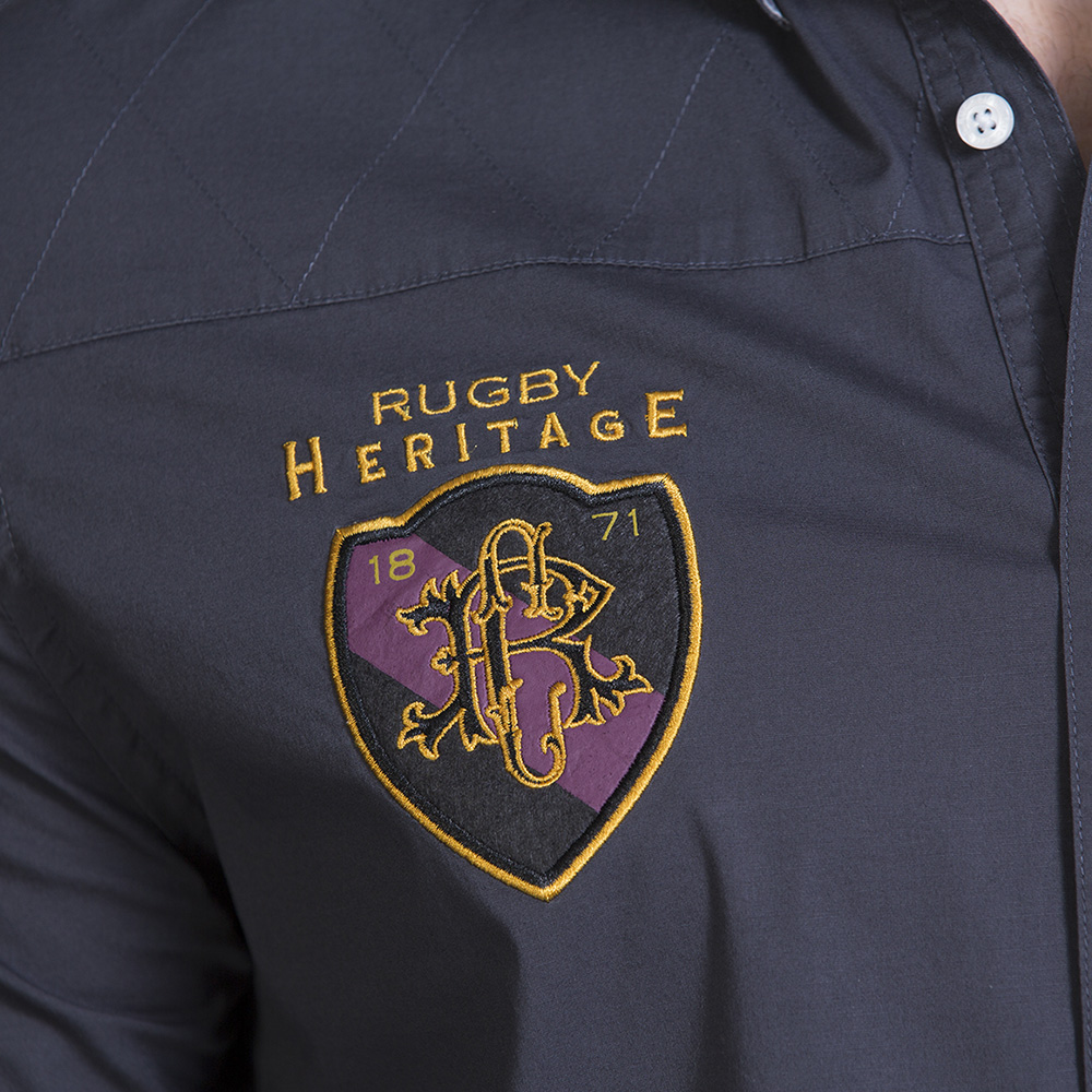 Sur une coupe classique, cette chemise manches longues en matière confort grise joue la mode rugby avec sa broderie à l'effigie du rugby Héritage sur la poitrine. Elle affiche des détails et de confection haut de gamme.