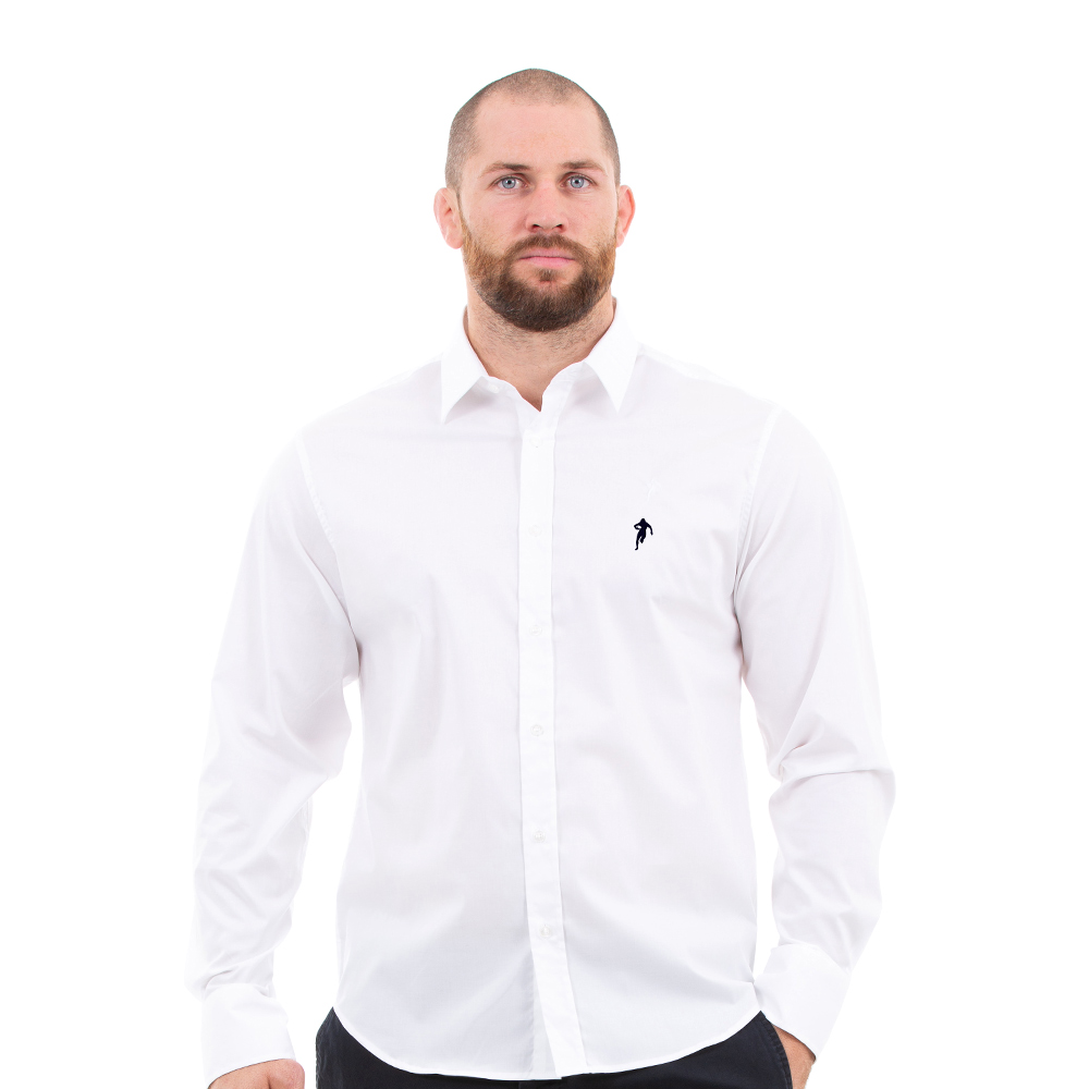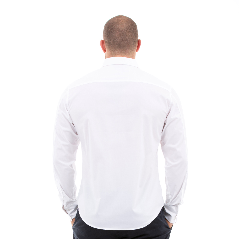La chemise homme à manches longues fait partie des basiques du dressing masculin ! Unie et de couleur blanche elle est confectionnée en popeline de coton pour une résistance et un tomber parfait. Sa coupe droite et son col français conviennent parfaitement à un look casual et décontracté.