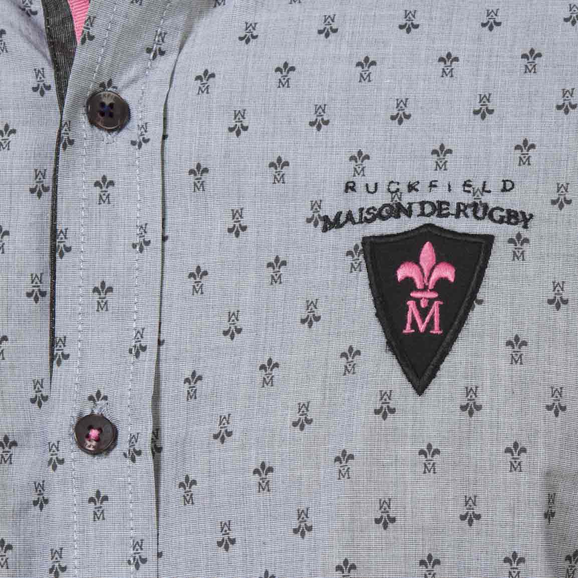 Faites ressortir le gentleman qui est en vous avec cette chemise grise en tout imprimé Maison de Rugby. Appréciez ses écussons brodés sur torse et dos et ses tissus contrastés sur revers de col et manches.