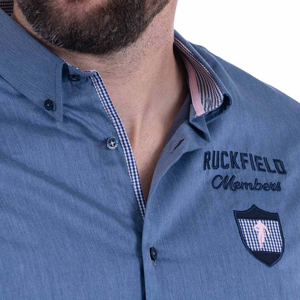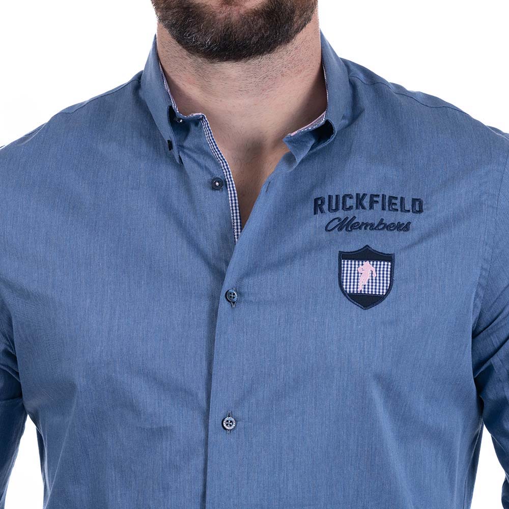 Cette chemise à manches longues est ornée d'un écusson brodé qui la fait passer de pièce classique à essentiel casual chic. Le petit plus ? Le revers des manches et l'écusson à carreaux vichy, fil conducteur de notre thème.