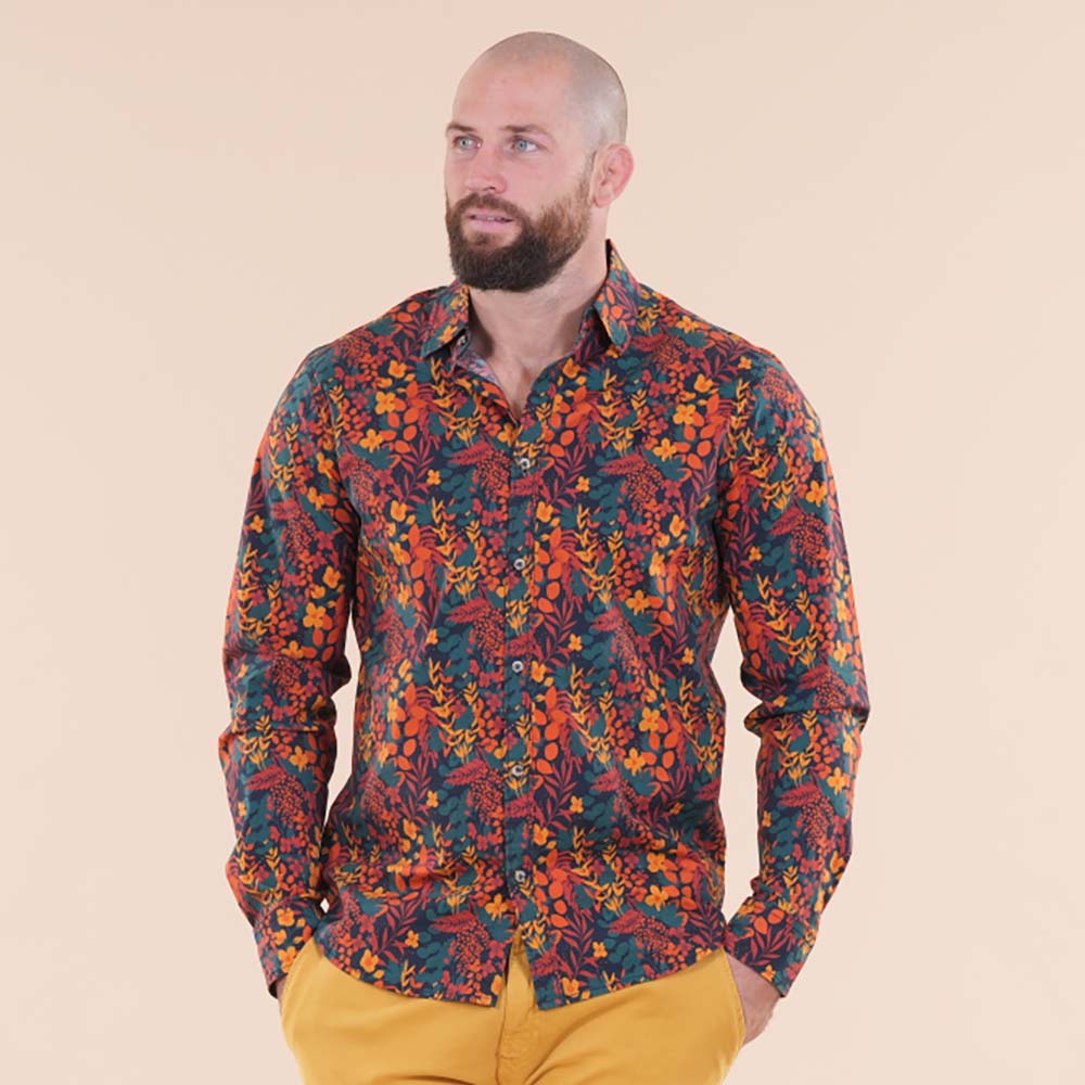 On retrouve l’imprimé floral de cette collection « Autumn Rugby Tour » sur cette chemise. C'est un coup coeur qui fait déjà partie de notre top vente de cette saison. Il n’y en aura pas pour tout le monde ! Alors n’hésitez pas ! Cette chemise est dotée d’un col à pointes libres et de pans arrondis pour plus d'aisance. Boutons gravés au nom de la marque. Vous pourrez la mixer avec nos pantalons chino de couleur ou un jean.