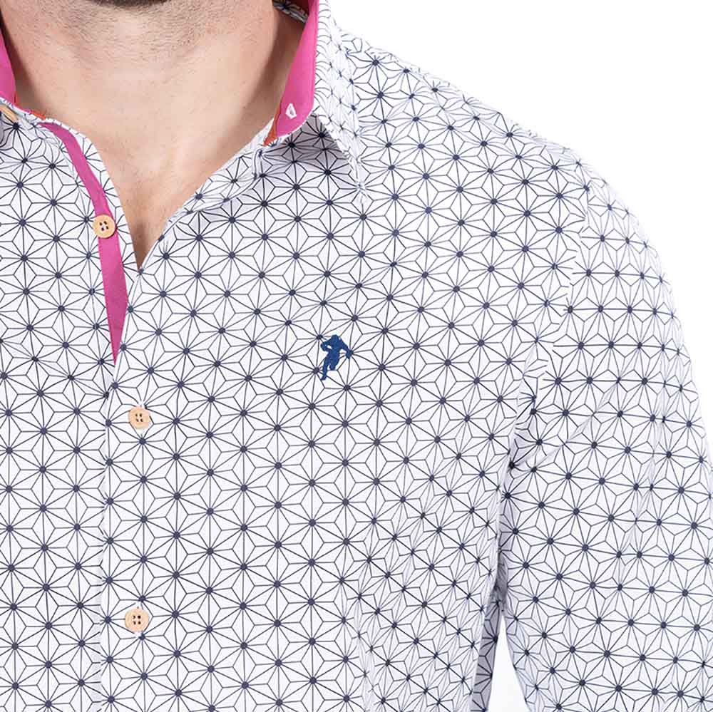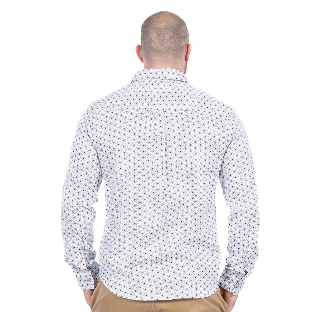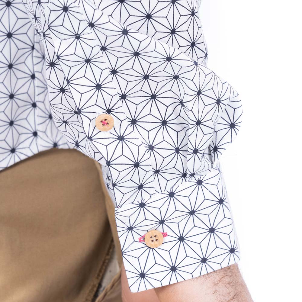 Misez sur le motif original de cette chemise inédite confectionnée en popeline de coton.