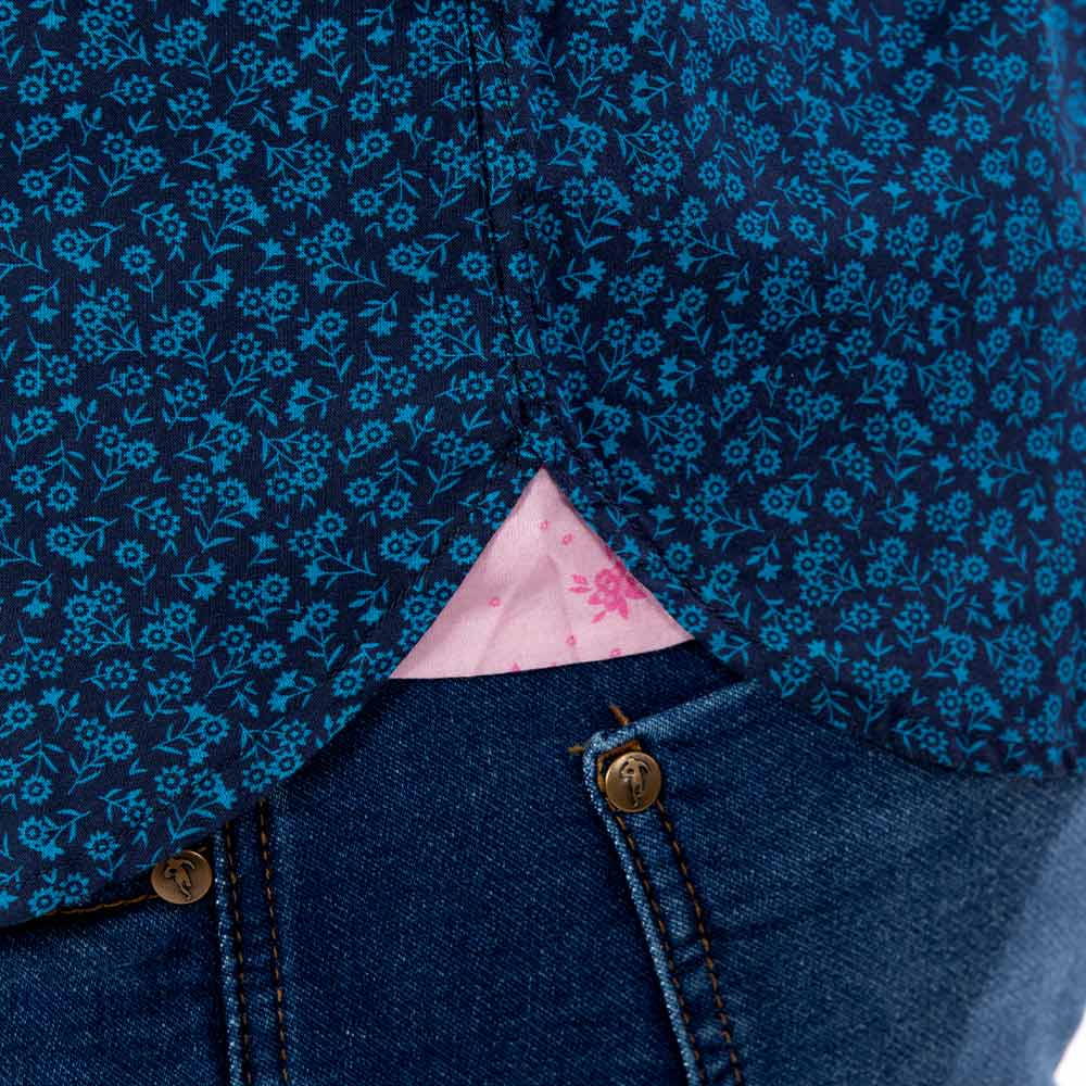 Le petit plus de cette chemise: son revers de manche contrasté floral.