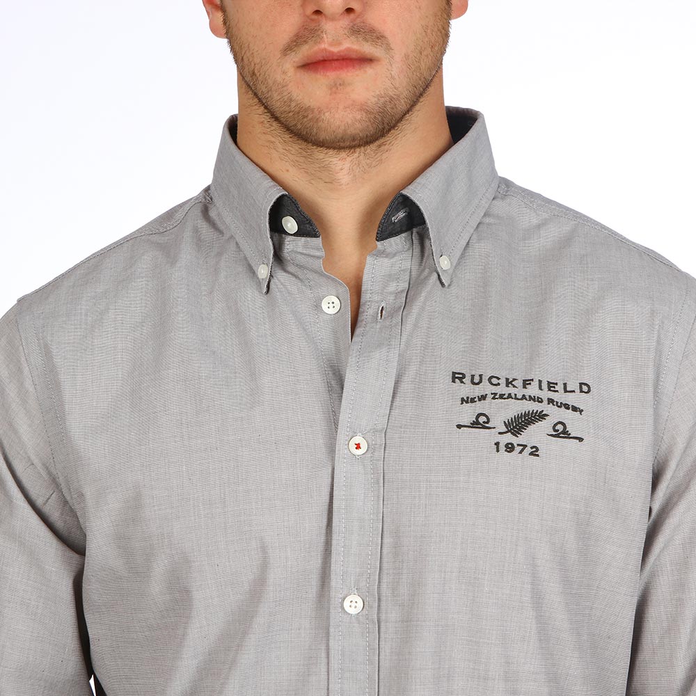 Chemise à manches longues Ruckfield représentant l'équipe de rugby de la Nouvelle Zélande. L'intérieur de la chemise, les manches et le col sont arborés de motifs bordana. Ce modèle est disponible en grandes tailles jusqu'au 5XL.