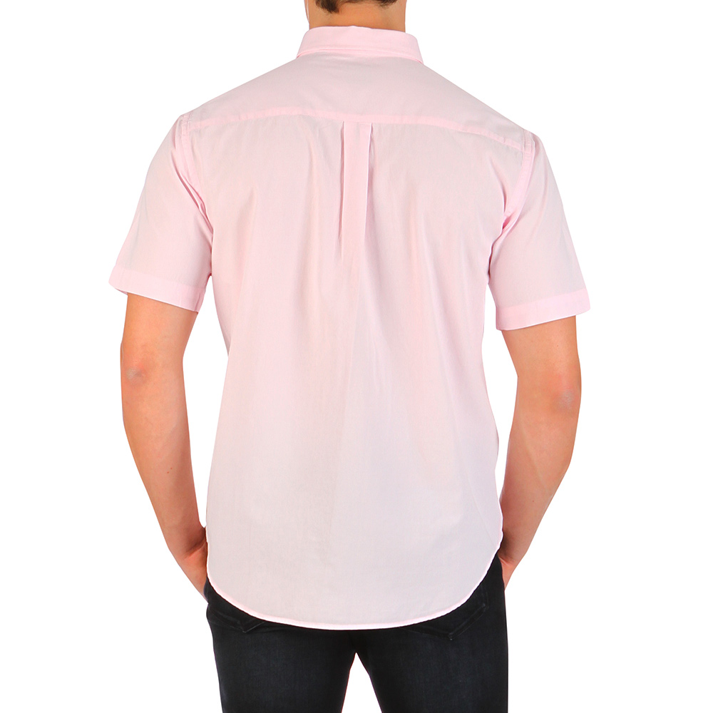 Chemise unie rose manches courtes 100% coton avec poche pour homme. Le logo Ruckfield,symbolisé par la silhouette de Sébastien Chabal, est brodé ton sur ton sur la poche.