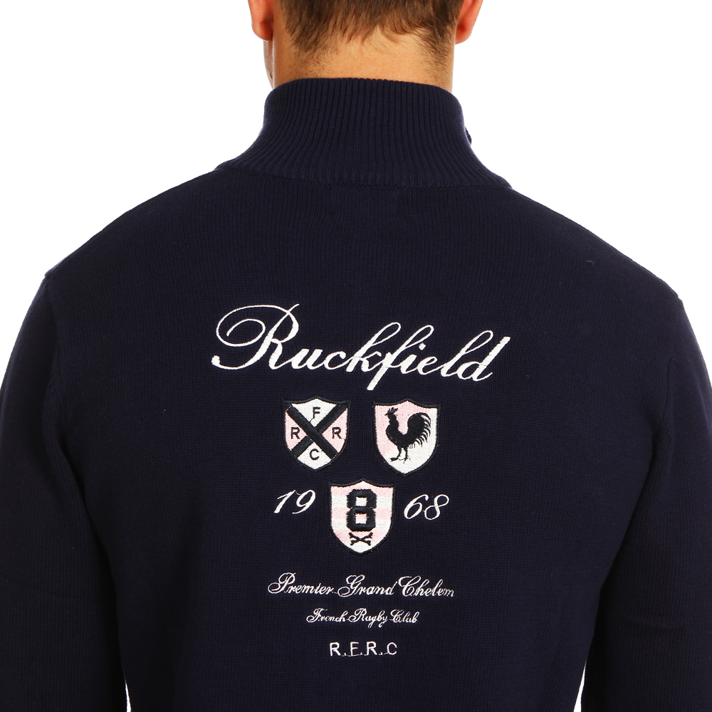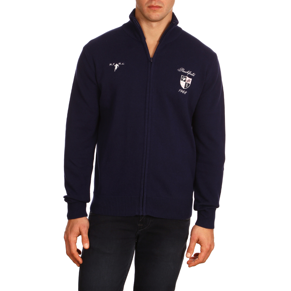 Gilet manches longues marine, 100% coton. Fermeture zippée, broderies dos et poitrine.