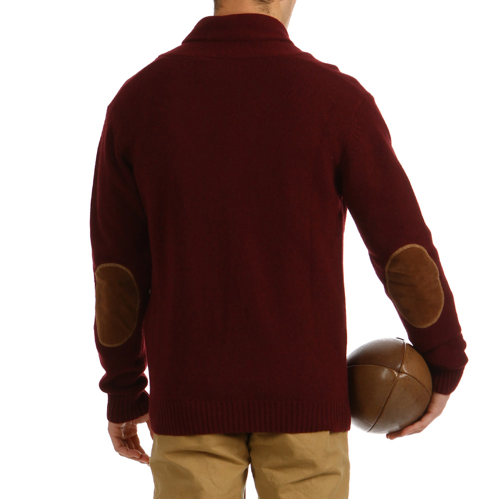 Ce pull rugby boutonné bordeaux adopte un look sportswear chic avec ses broderies poitrine et ses coudières.