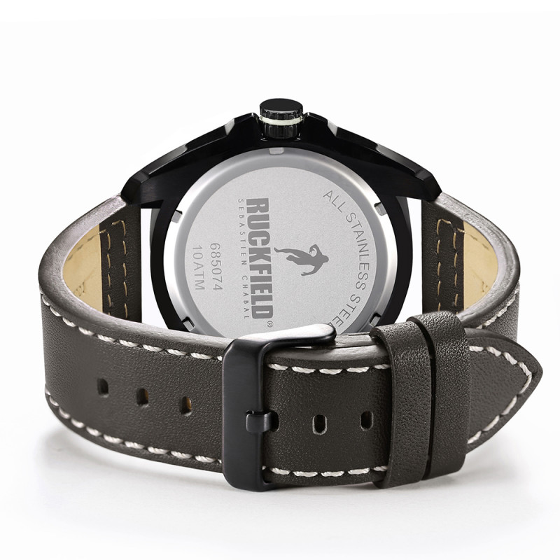 La montre Ruckfield 685074 est une montre homme en Acier couleur ipblack. Elle est étanche à 100m (10 ATM) et est très résistante.