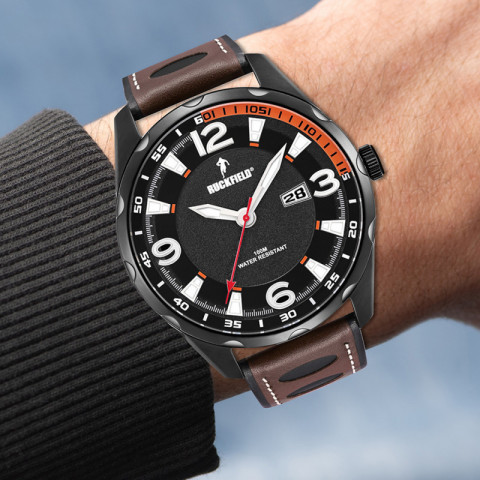 Le mouvement de la montre est un mouvement japonais de haute précision 3 aiguilles Date. La couronne est protégée contre les chocs.