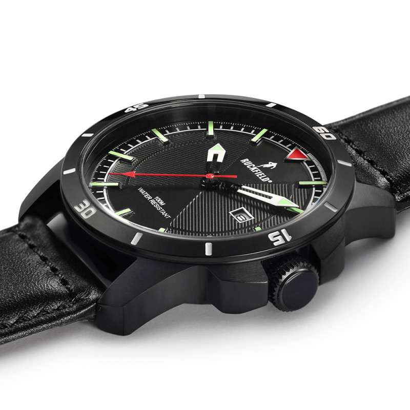 La montre RUCKFIELD 685002 est une montre en ACIER noire (PVD Black) très résistante. Elle est équipée d’une protection de la couronne. Le fond en ACIER est vissé. Cette montre est étanche 100m (10ATM). Le bracelet est en cuir de veau et le cadran est noir avec des index lumineux.