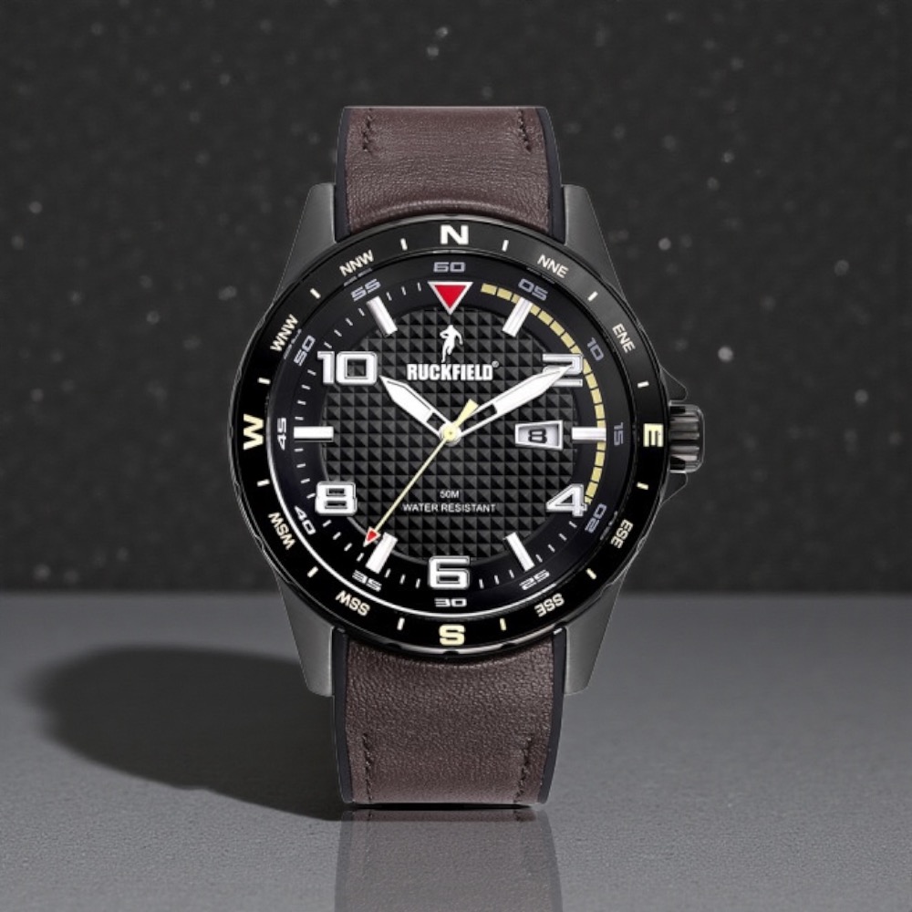 Très jolie montre Ruckfield par Sébastien Chabal avec son bracelet cuir et silicone. Son cadran noir et gris avec un affichage contrasté apportera style et praticité ! Le détail subtil pour terminer sa tenue Ruckfield.