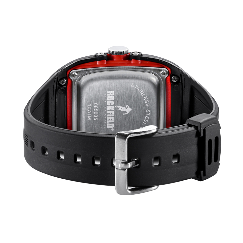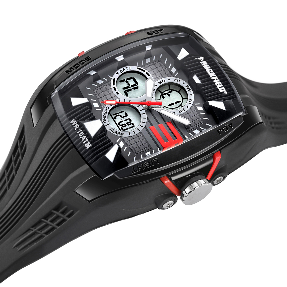 La Montre RUCKFIELD 685035 est une montre de Sport pour Homme inspirée du design des casques de Rugby. Elle est équipée d’un mouvement quartz de haute précision Analogique et digital qui comporte une alarme, un chronomètre, la date, un double fuseau horaire.