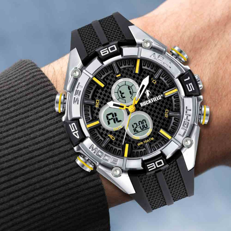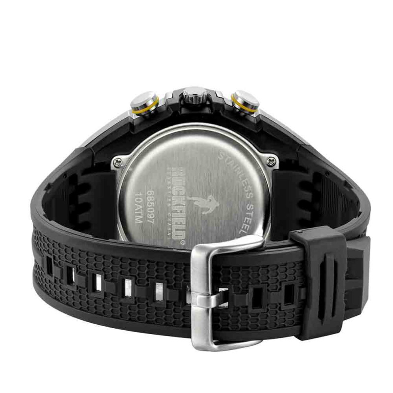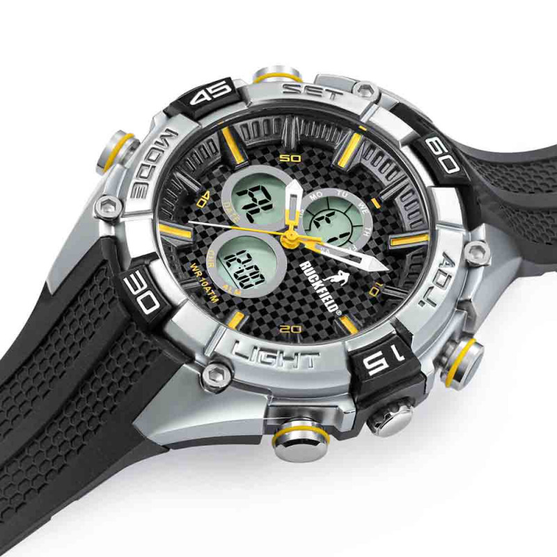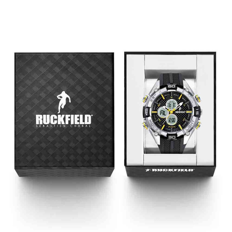 La Montre RUCKFIELD 685097 est une montre de Sport pour Homme. Elle est équipée d’un mouvement quartz de haute précision Analogique et digital qui comporte une alarme, un chronomètre, la date, un double fuseau horaire.