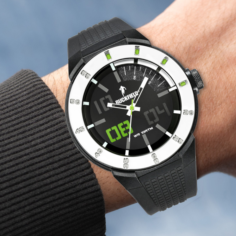 La montre Ruckfield 685100 est une montre sport homme équipée d’un mouvement de haute précision Analogique et digital. Elle comporte un chronomètre et une alarme.