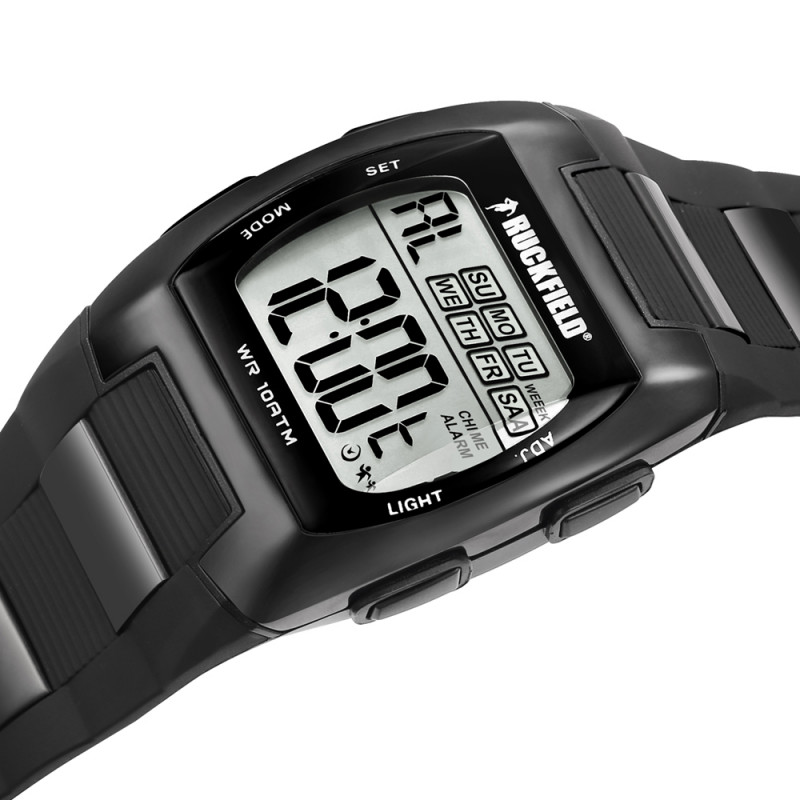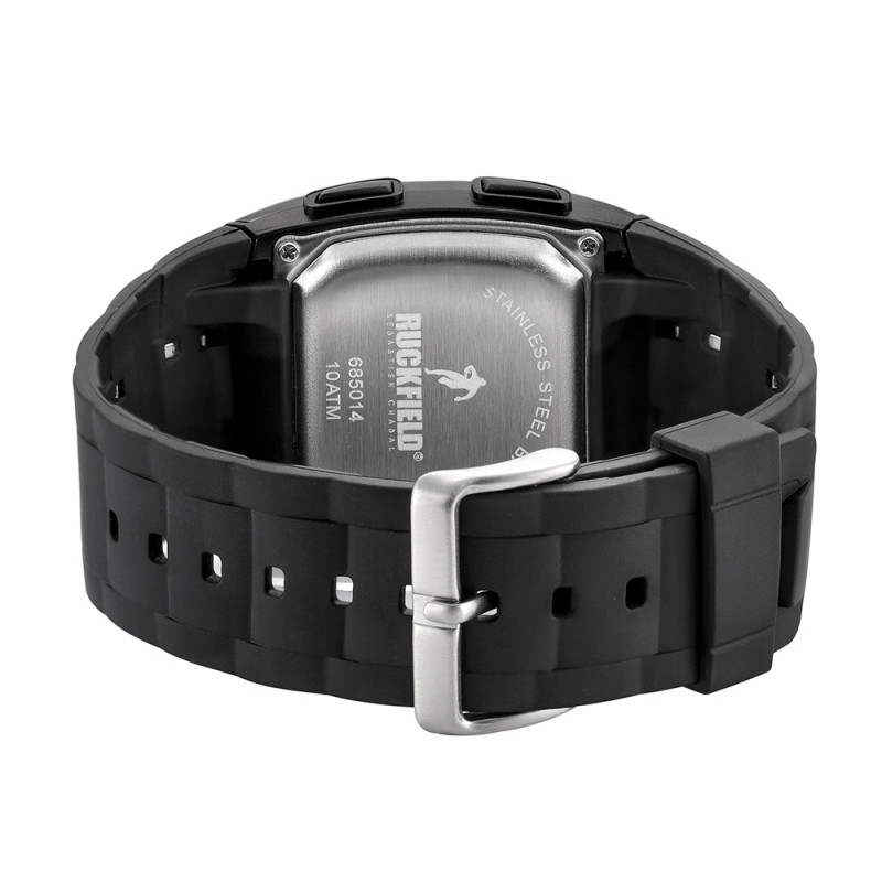 La Montre RUCKFIELD 685014 est une montre homme équipée d’un mouvement quartz digital. Elle est étanche à la baignade,100 m (10ATM). Le bracelet est en Silicone noir et le fond est en acier, il est vissé pour améliorer l’étanchéité.