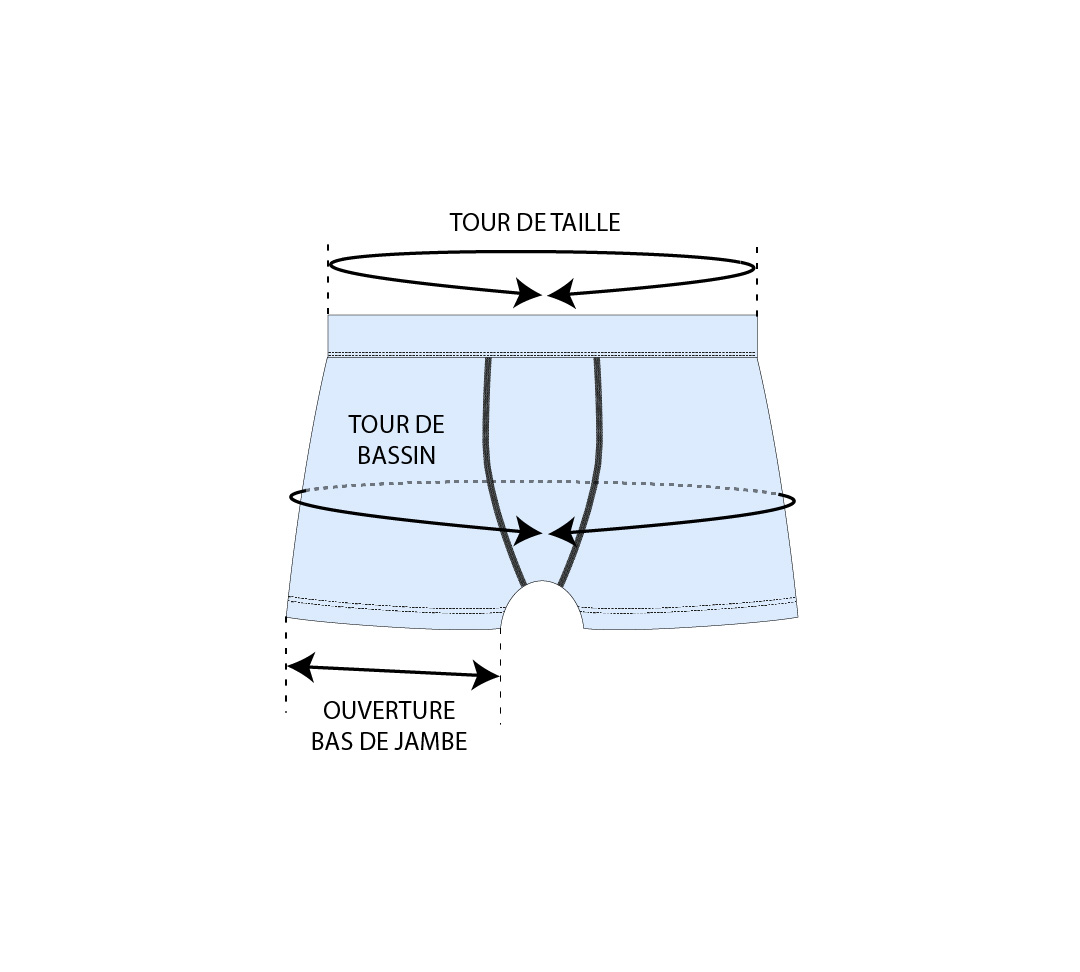 | ½ Ouverture bas de jambe SHORT | 26 | 27 | 28 | 29 | 30 | 31,5 | 33 | 34,5 |