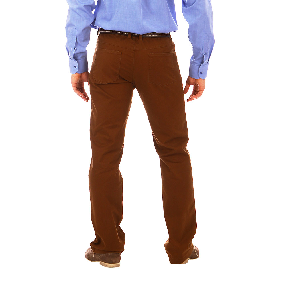 Pantalon 5 poches camel, une couleur très vintage, bien porté avec une chemise bleu clair ou blanc cassé ! Détails discrets : silhouette de Sébastien Chabal brodée en noir, intérieur du pantalon à carreaux…