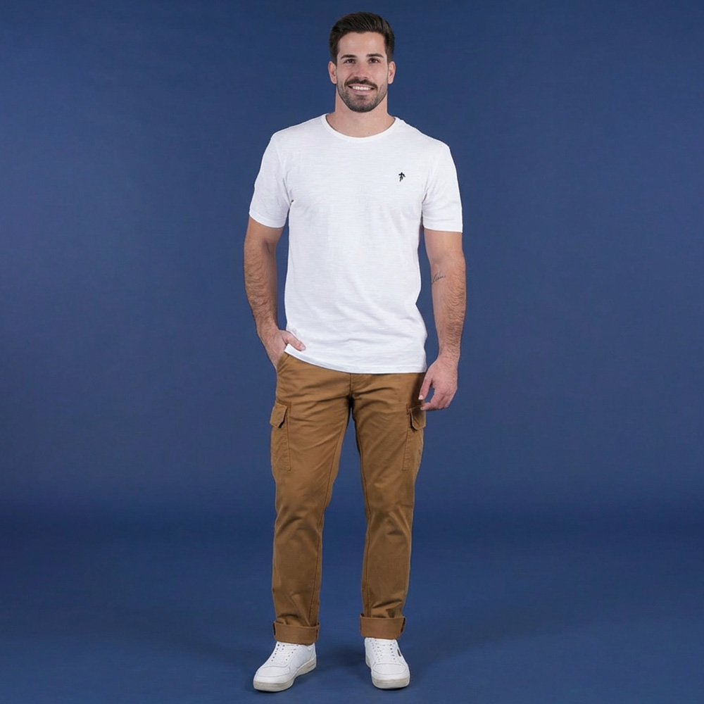 Ce pantalon cargo allie confort et fonctionnalité avec son look utilitaire affirmé. Doté de deux poches latérales classiques et de deux poches supplémentaires au niveau des genoux, il offre un espace de rangement optimal tout en gardant une silhouette moderne.