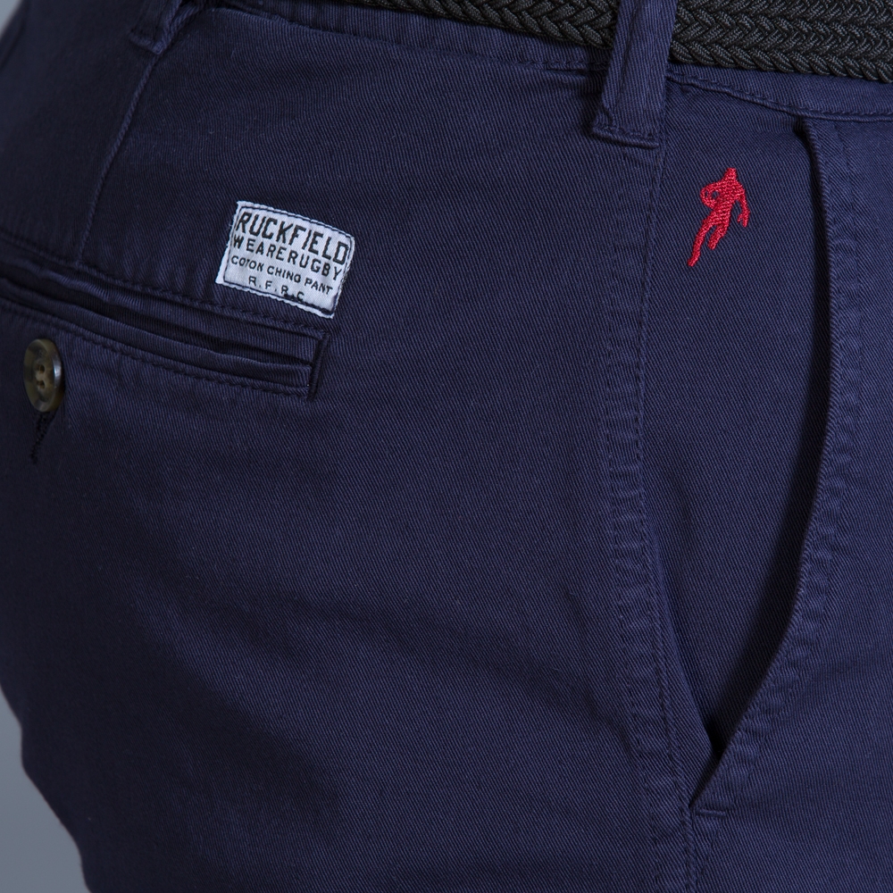 Intemporel et indispensable pour un look décontracté le chino Ruckfield vous séduira par sa couleur, son coton stretch et sa coupe irréprochable. Logo brodé Sébastien Chabal sur poche.