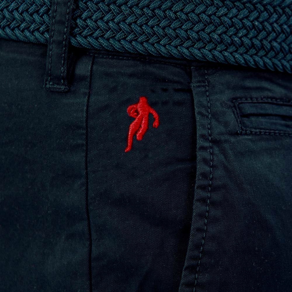 Un pantalon chino intemporel et élégant, en coton twill bleu marine qui vous amènera un confort pour toute la journée. Logo brodé Sébastien Chabal sur poche. Il se porte aussi bien avec un polo ou un t-shirt qu'avec une chemise.