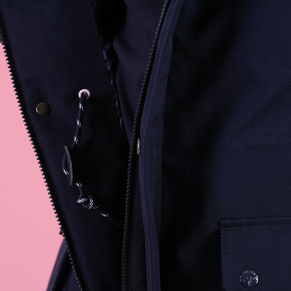 Côté isolation tout est prévu pour vous protéger efficacement contre le froid : col montant doublé d’une imitation fourrure, fermeture zippée sous patte pressionnée à double zip permet d'apporter plus de confort, des poignets tempête resserrés par des côtes. Cordon de serrage à la taille.