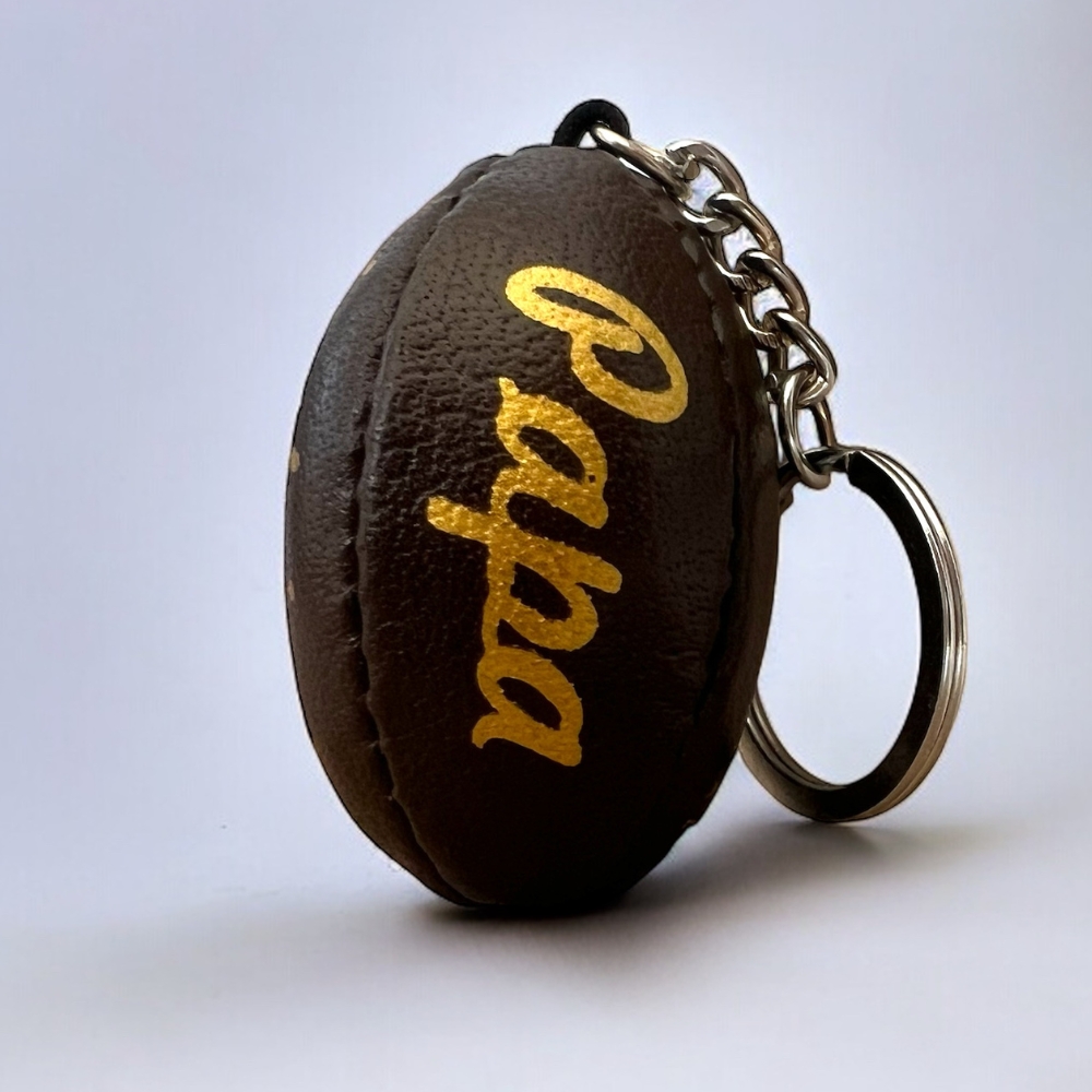 Magnifique porte-clés ballon de rugby en cuir marron personnalisé "Papa je t'aime"