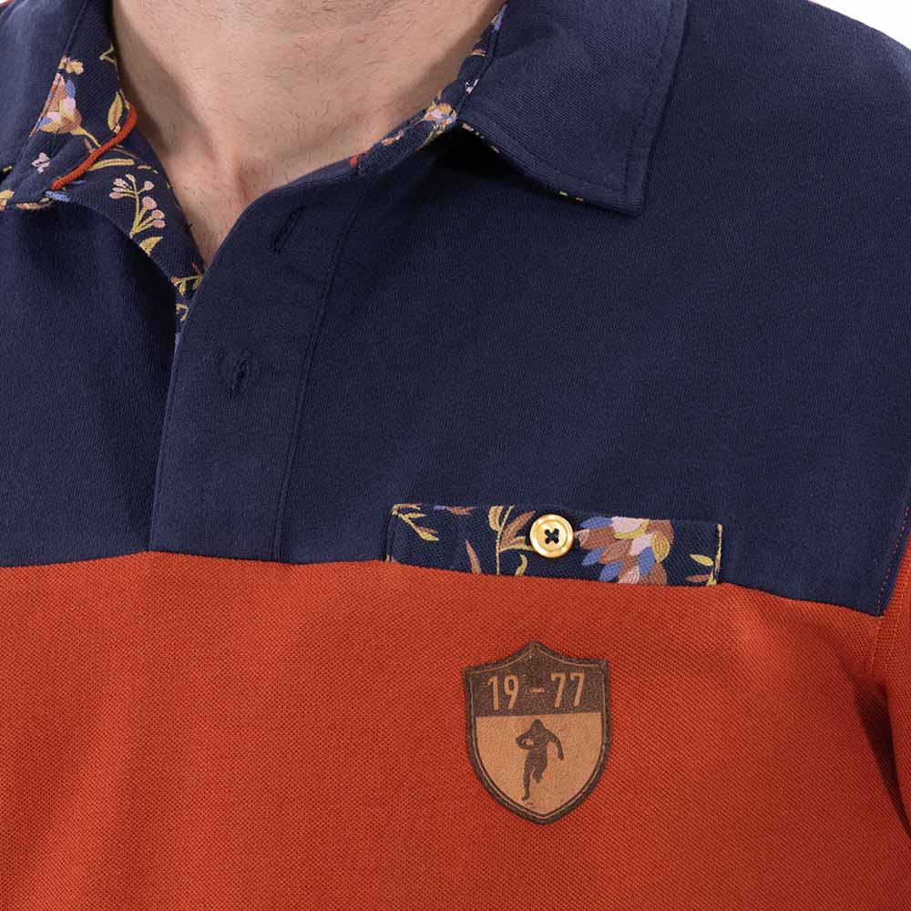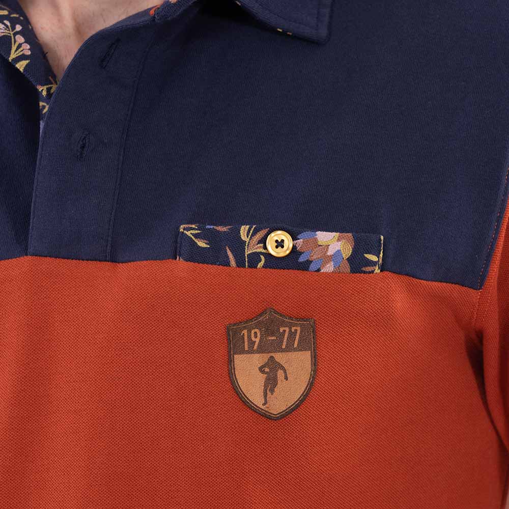 Misez sur le côté original de ce polo grâce à sa couleur rouille, très tendance cette saison. On note les détails du thème, les broderies soignées et le travail dans le revers du col. Il s'adaptera très bien avec un chino.