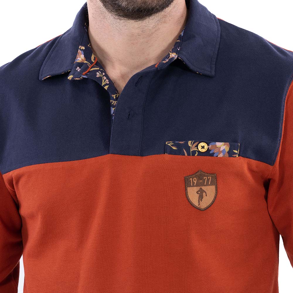 Polo bicolore Ruckfield à manches longues Rugby d'Automne rouille