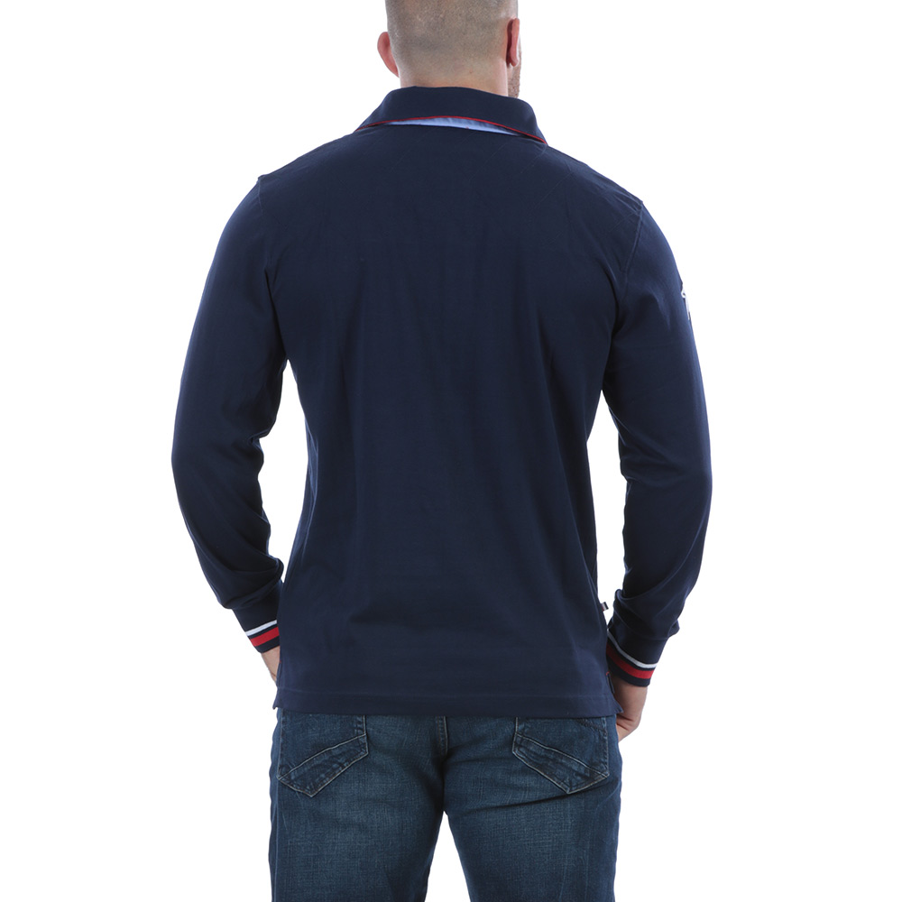 De nombreux détails pour le polo manches longues de l'été. Magnifique broderie poitrine, dans la patte de boutonnage et sur l'épaule. A cela s'ajoute plusieurs détails aux couleurs de la France. Notre Best de la saison !